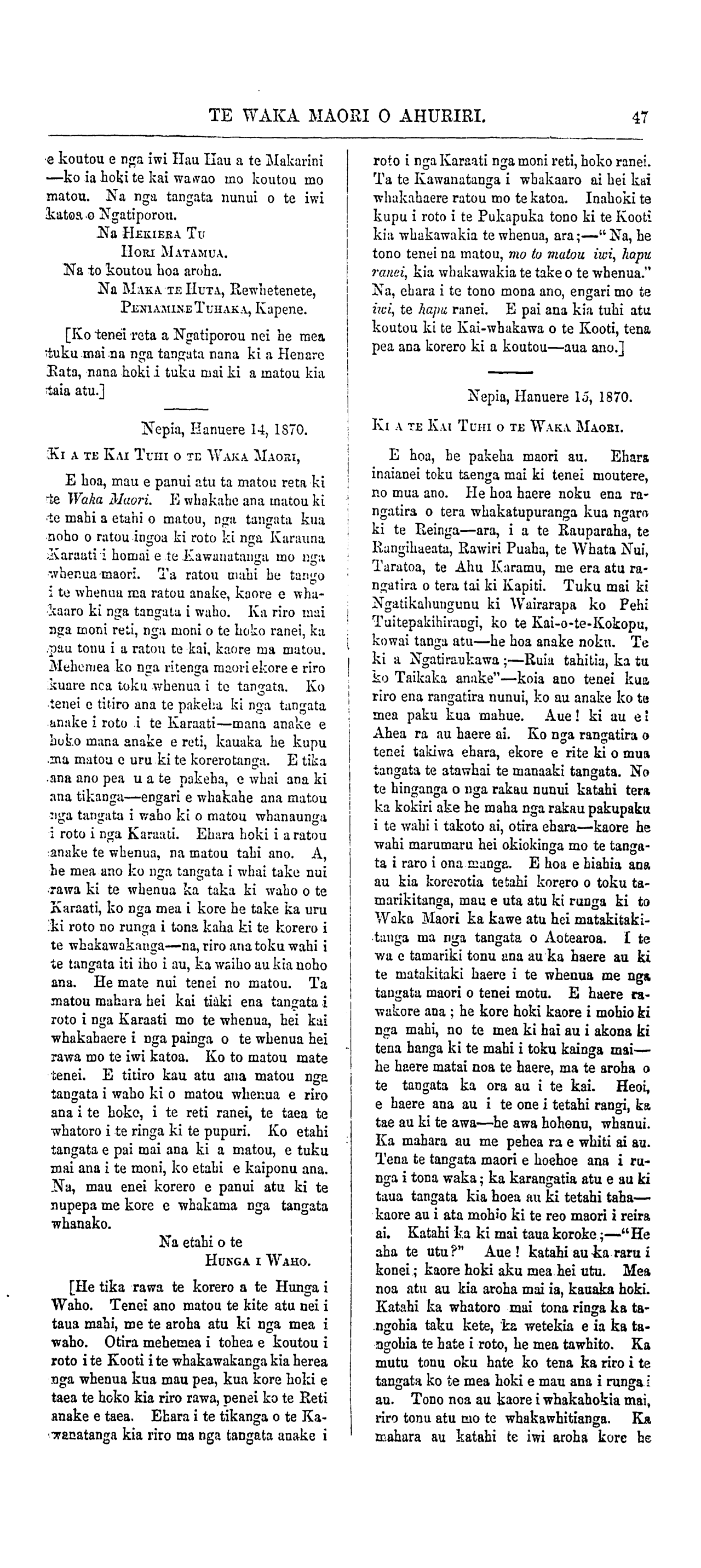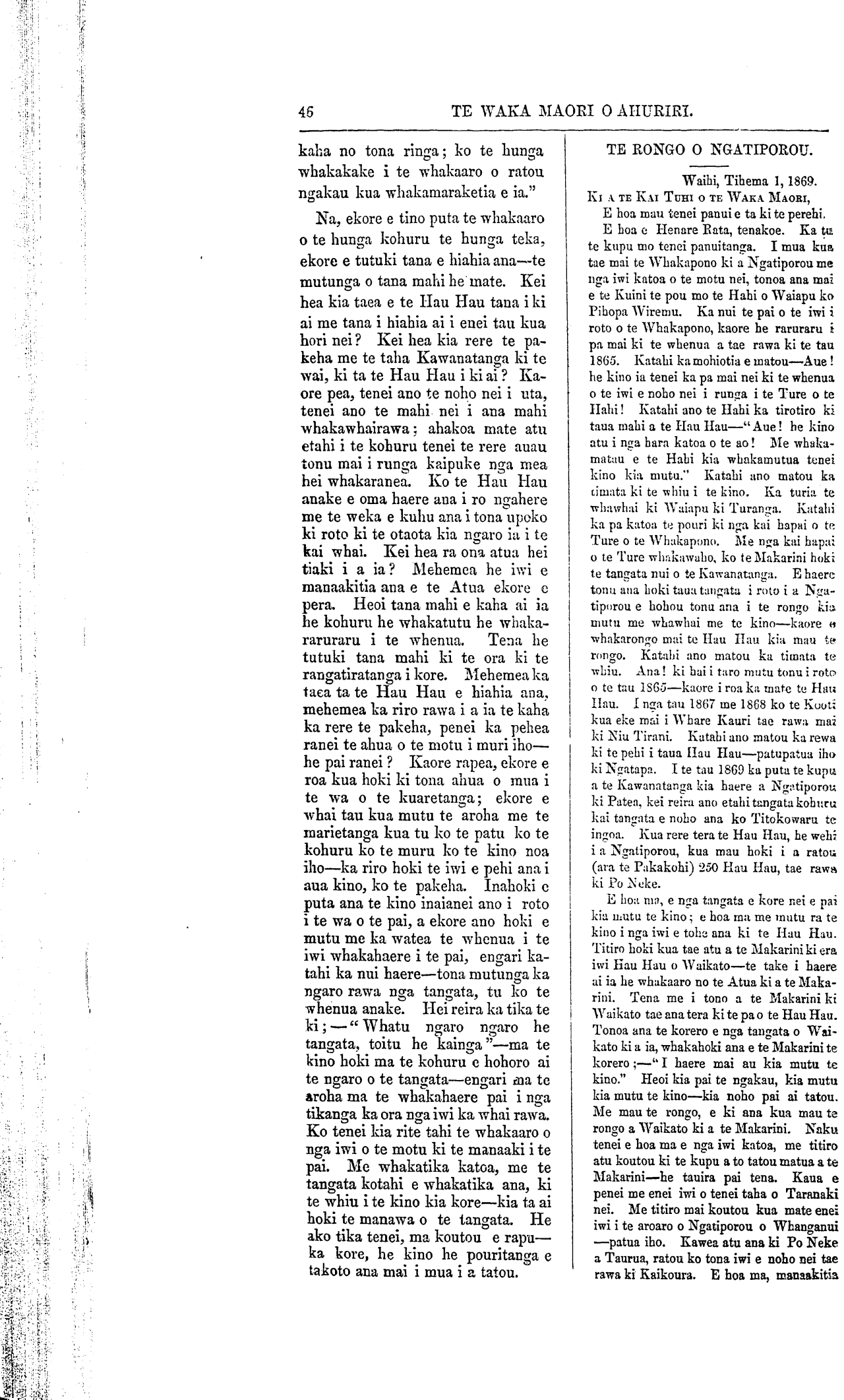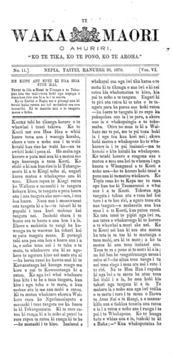 Te Waka Maori o Ahuriri 1863-1871: Volume 6, Number 11. 20 January 1870 |