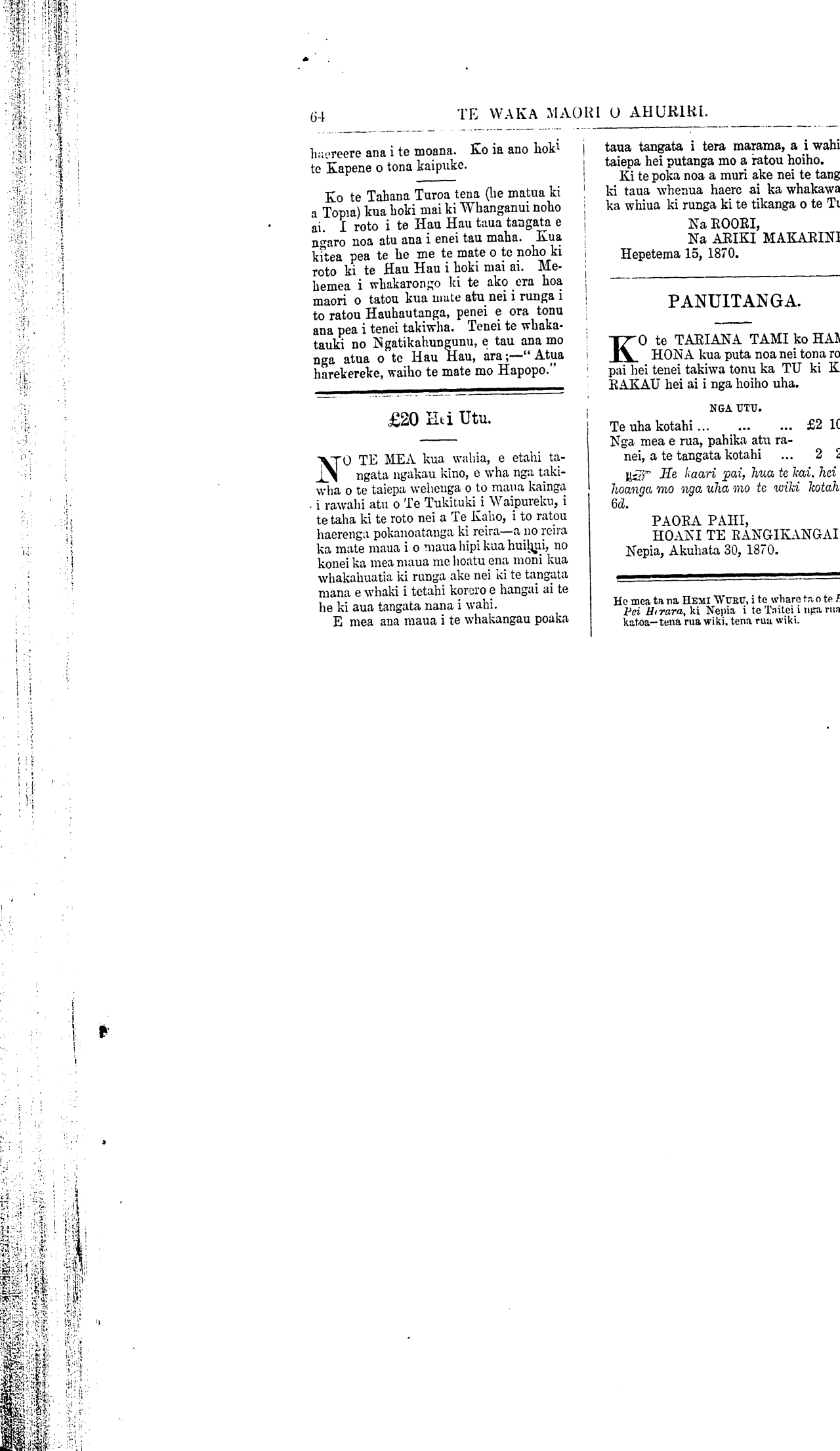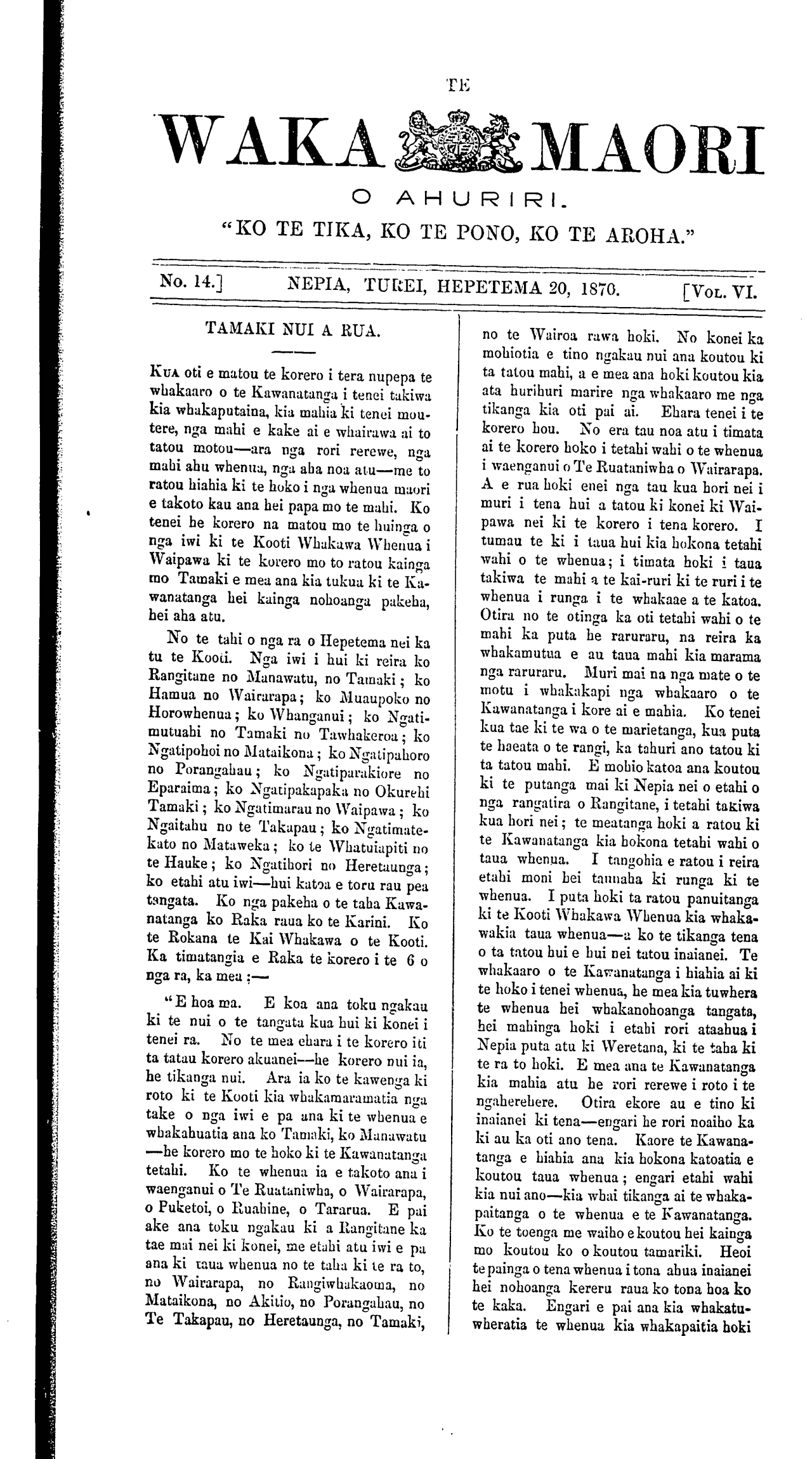 No. 14. 1 NEPIA, TUREI, HEPETEMA 20, 1870. [VOL. VI.