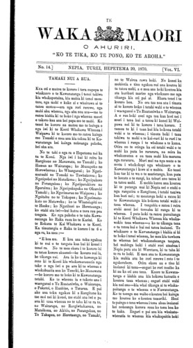 Te Waka Maori o Ahuriri 1863-1871: Volume 6, Number 14. 20 September 1870 |