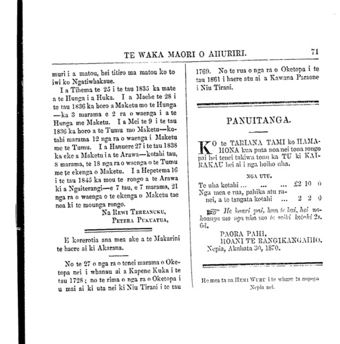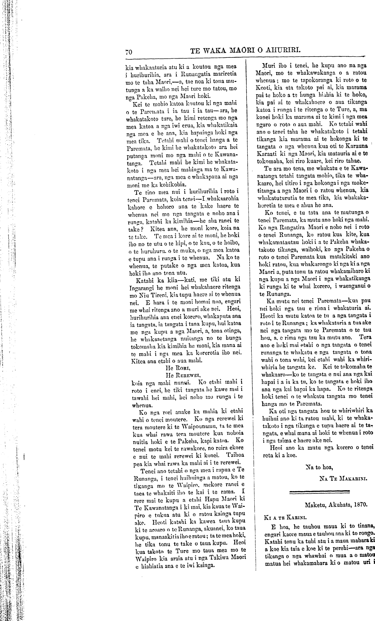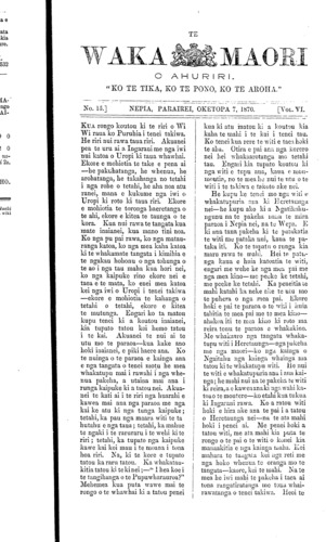 Te Waka Maori o Ahuriri 1863-1871: Volume 6, Number 15. 07 October 1870 |