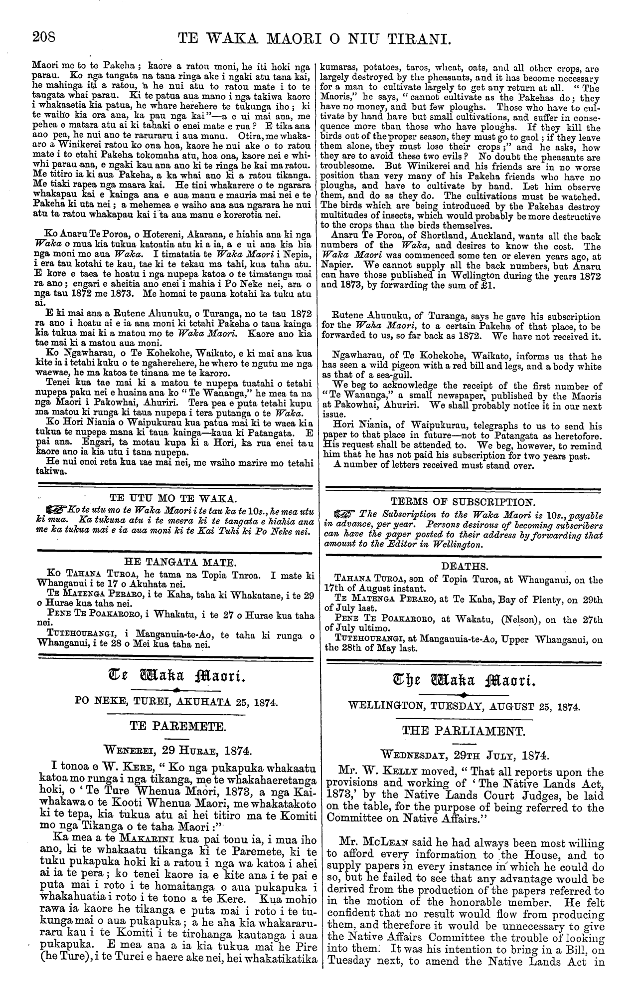 Te Waka Maori o Niu Tirani 1871-1877: Volume 10, Number 17. 25 August 1874 |