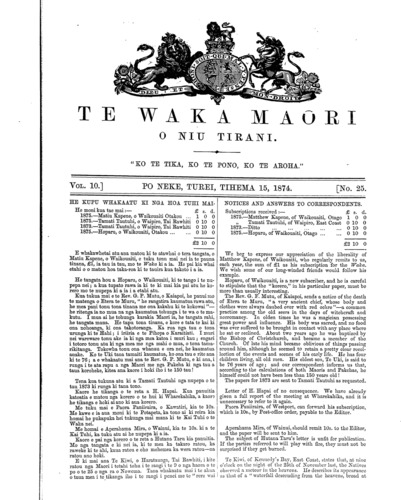 Te Waka Maori o Niu Tirani 1871-1877: Volume 10, Number 25. 15 December 1874 |