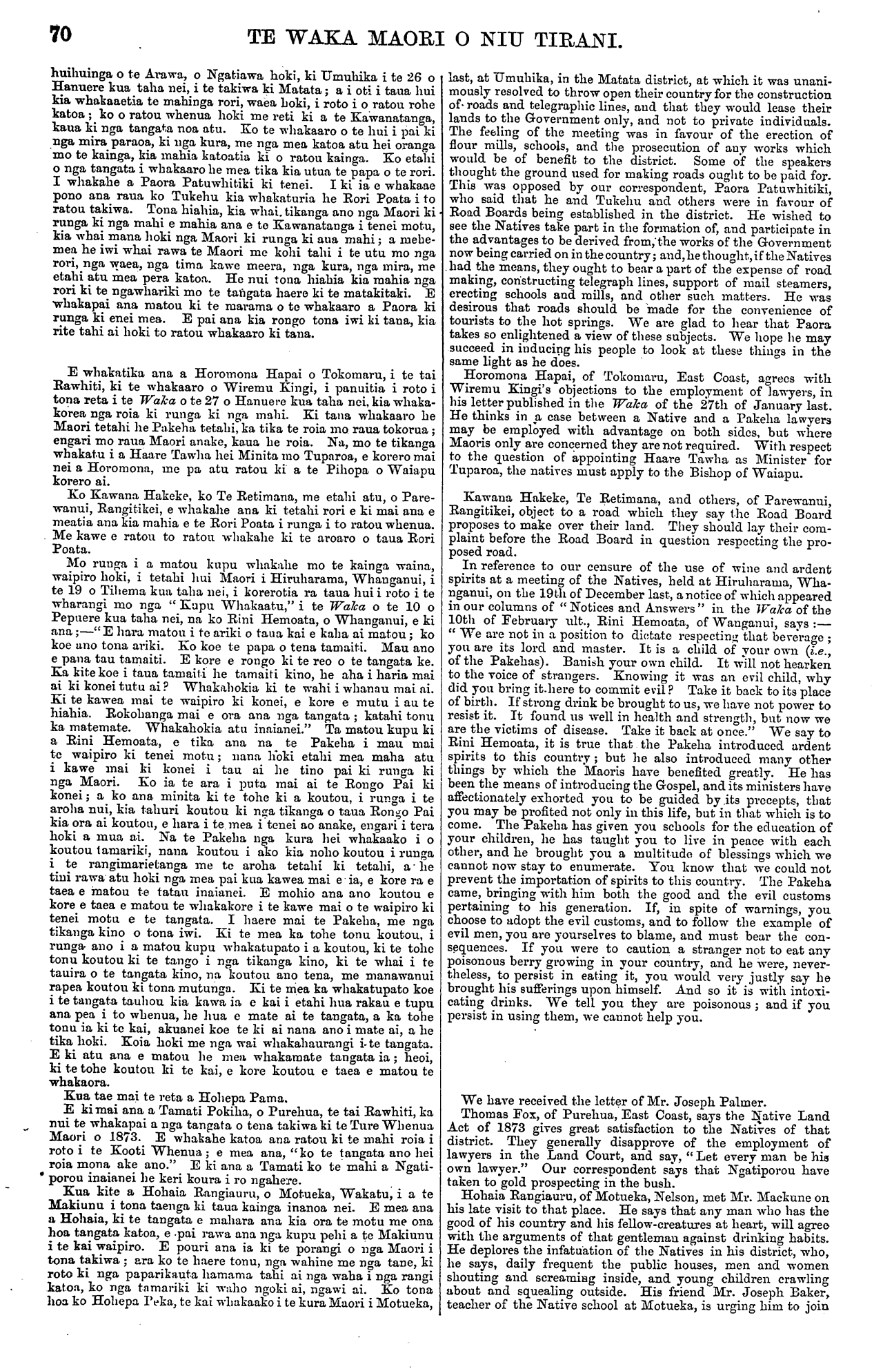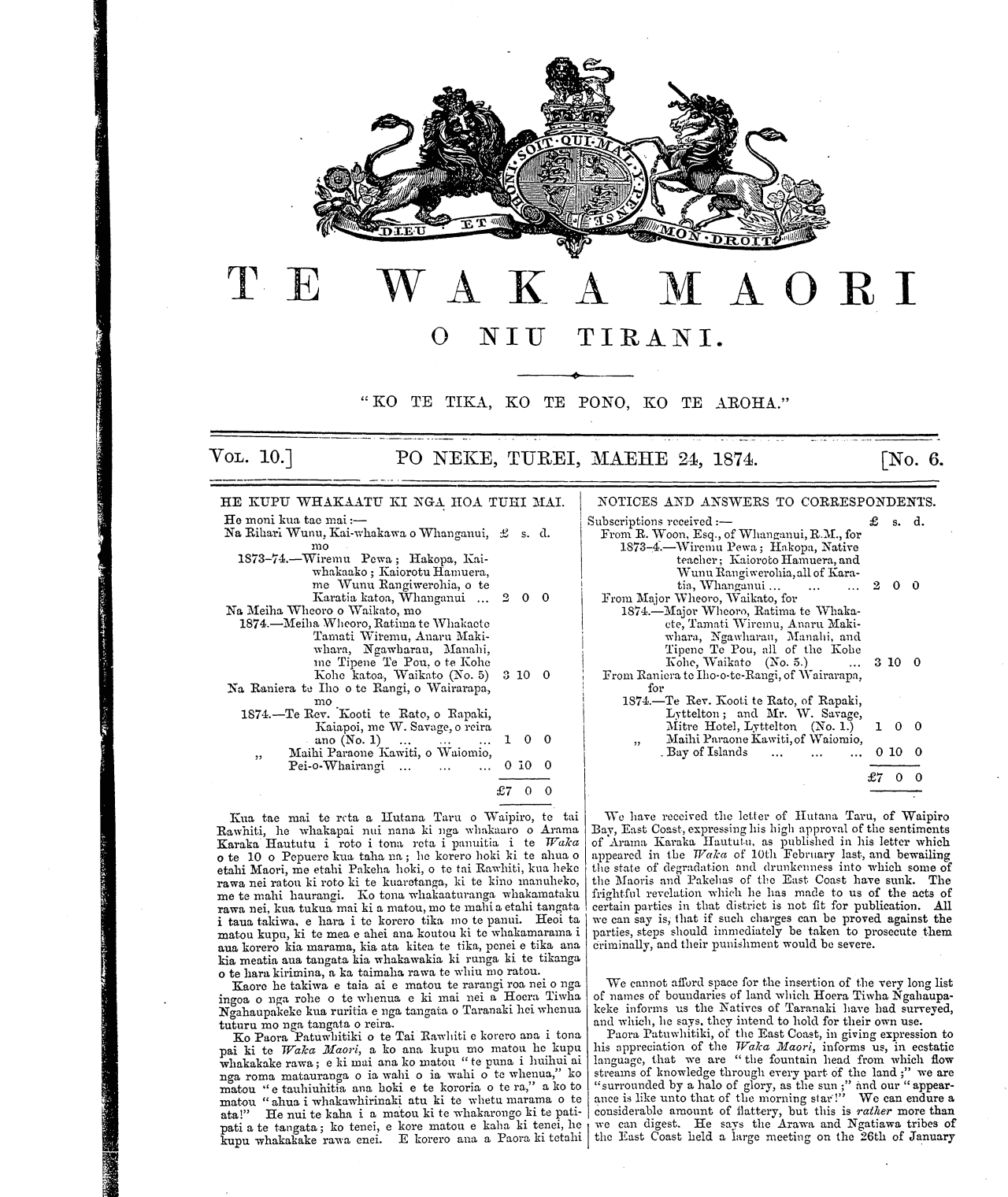 Te Waka Maori o Niu Tirani 1871-1877: Volume 10, Number 6. 24 March 1874 |