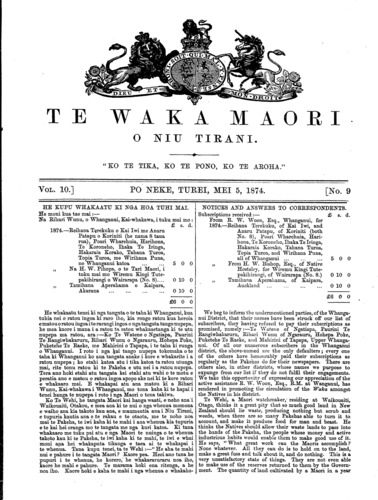 Te Waka Maori o Niu Tirani 1871-1877: Volume 10, Number 9. 10 May 1874 |