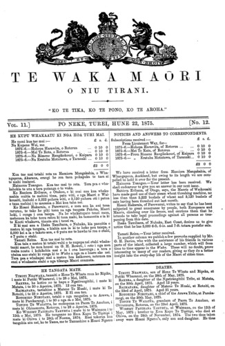 Te Waka Maori o Niu Tirani 1871-1877: Volume 11, Number 12. 22 June 1875 |