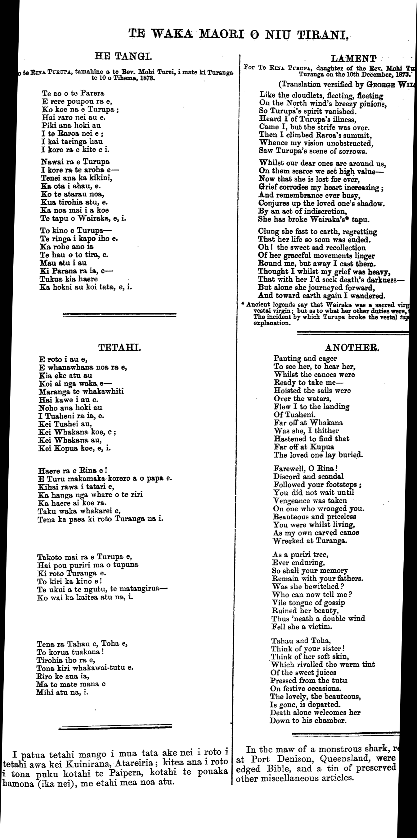 I mate ki Waimamaku, i te 29 of Hurae, 1876.   He nui rawa te