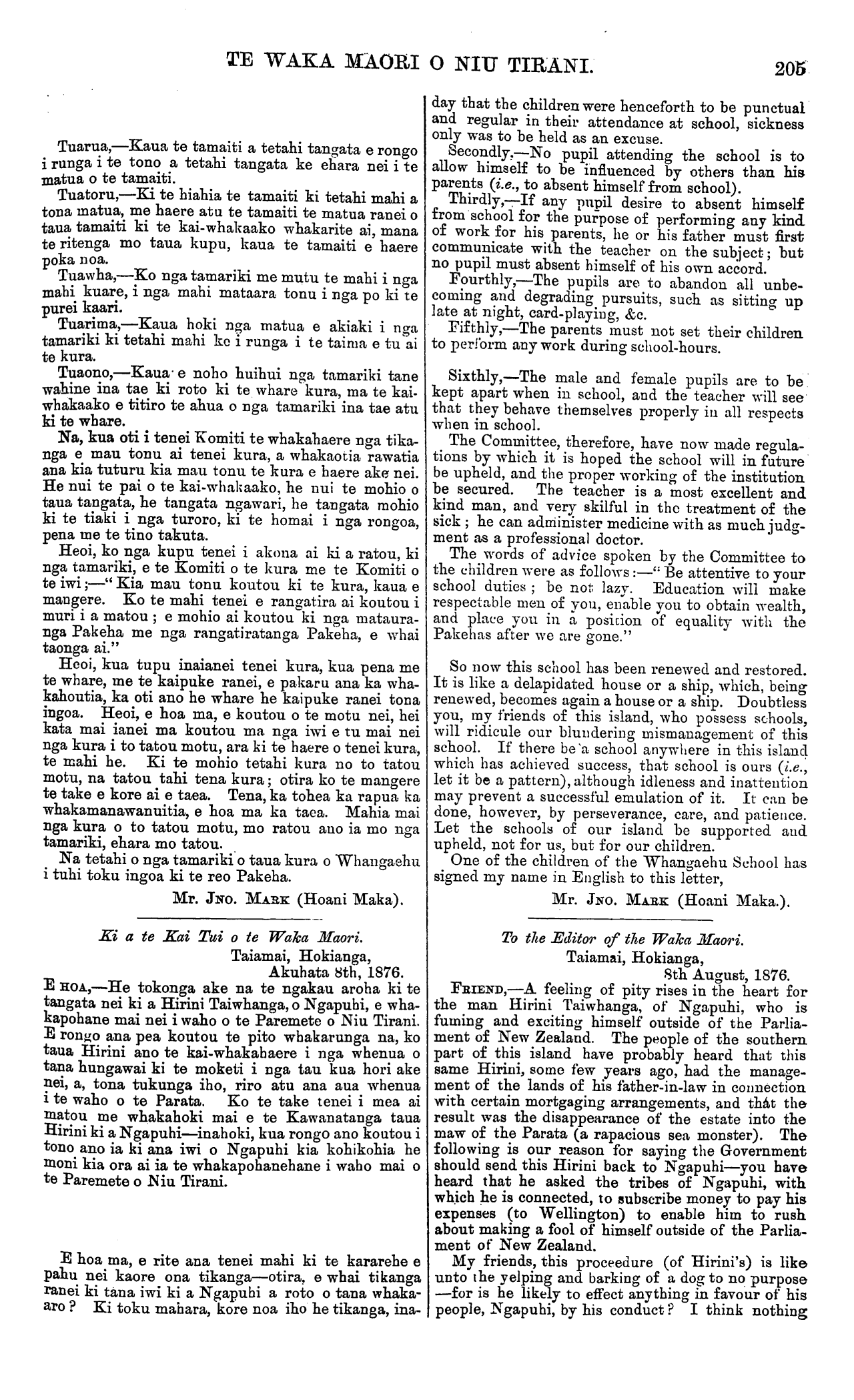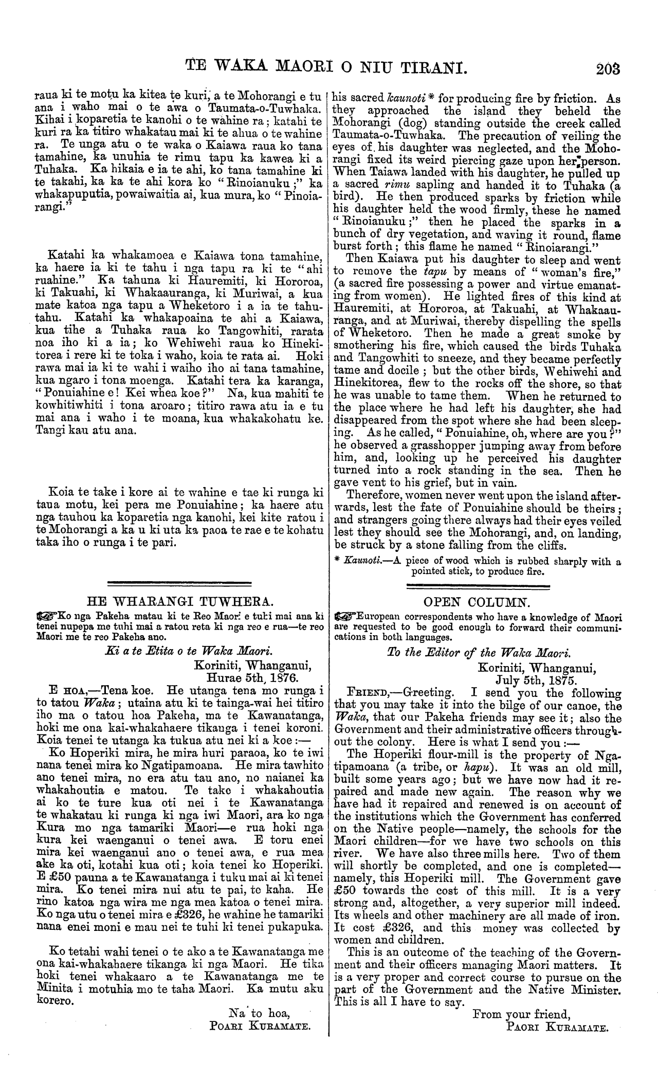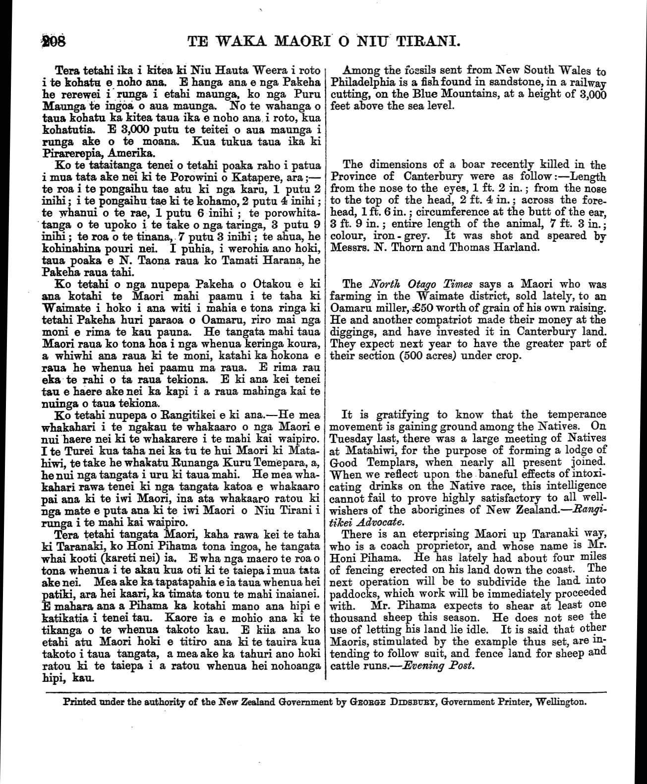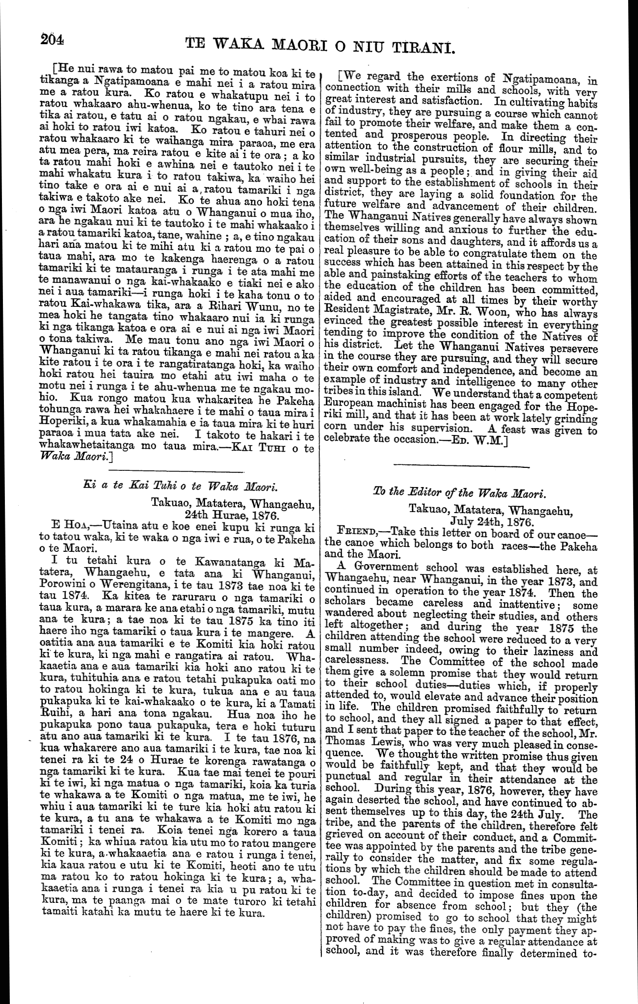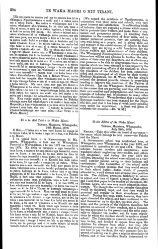 Ko tetahi nupepa o Rangitikei e ki ana.—He mea