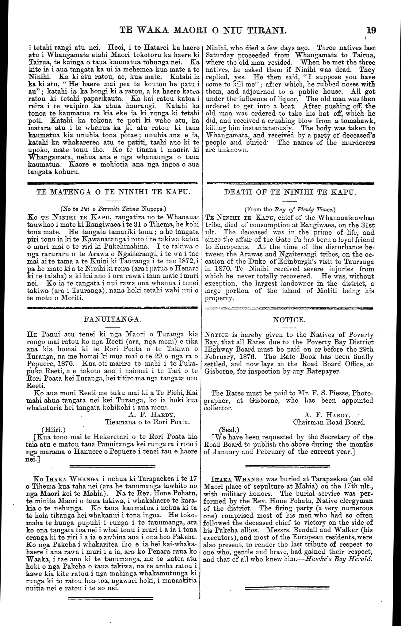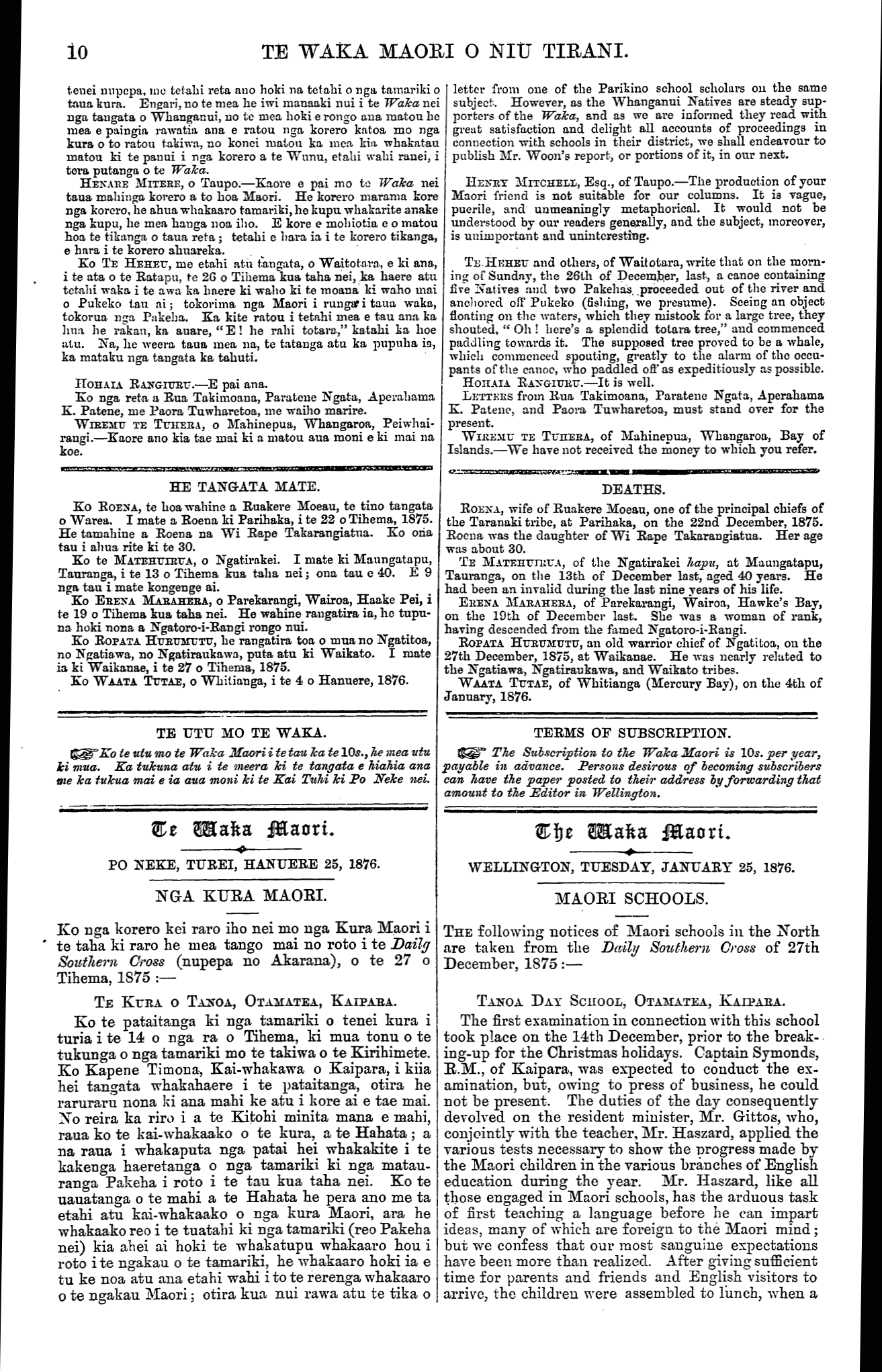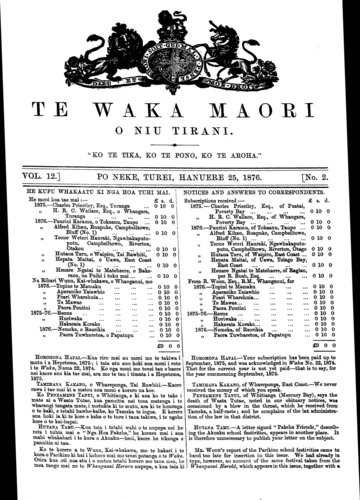 Te Waka Maori o Niu Tirani 1871-1877: Volume 12b, Number 2. 25 January 1876 |