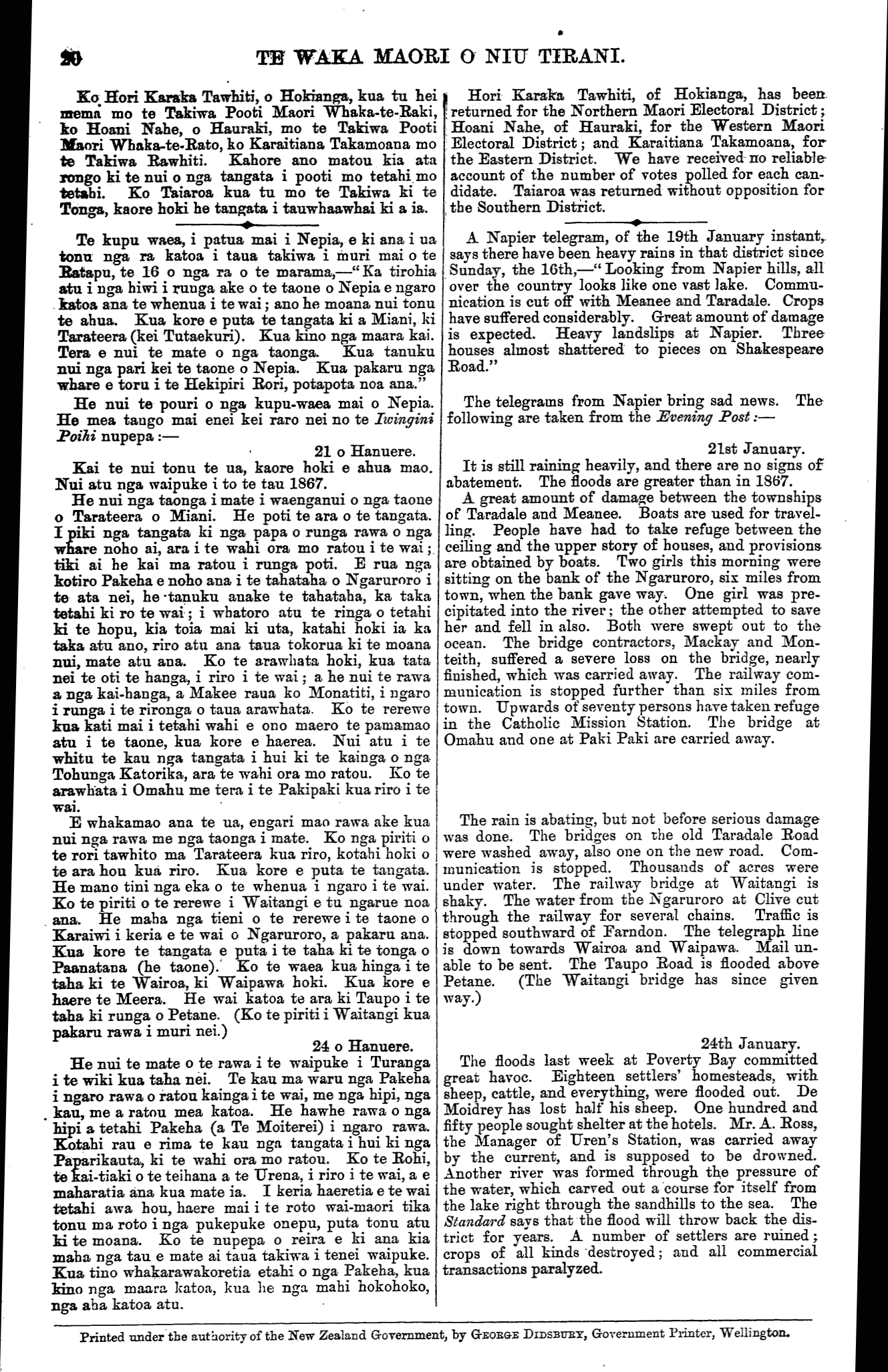 HOROMONA HAPAI.—Kua riro mai au moni mo te takiwa i