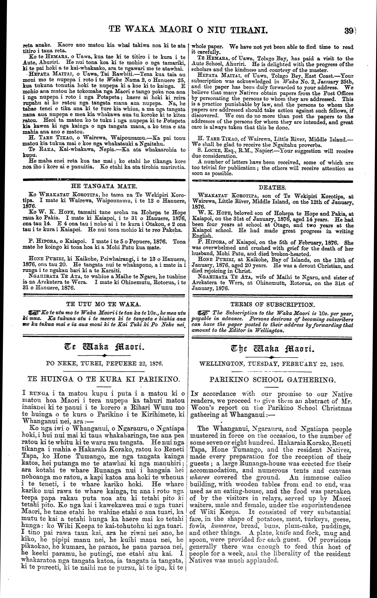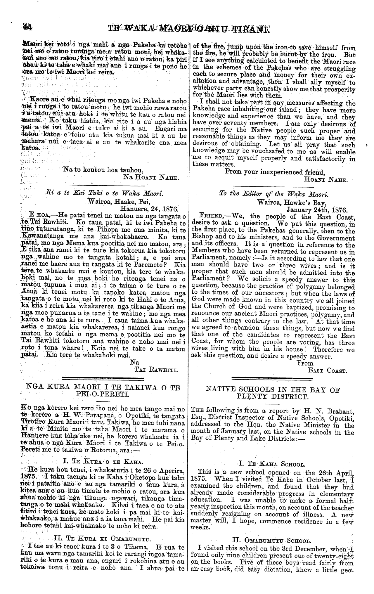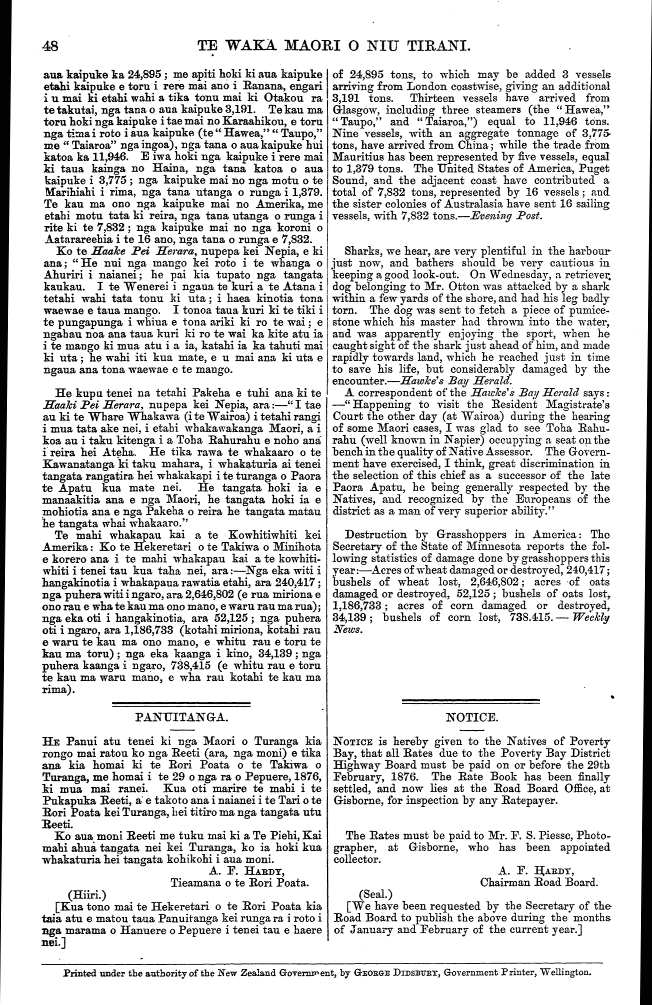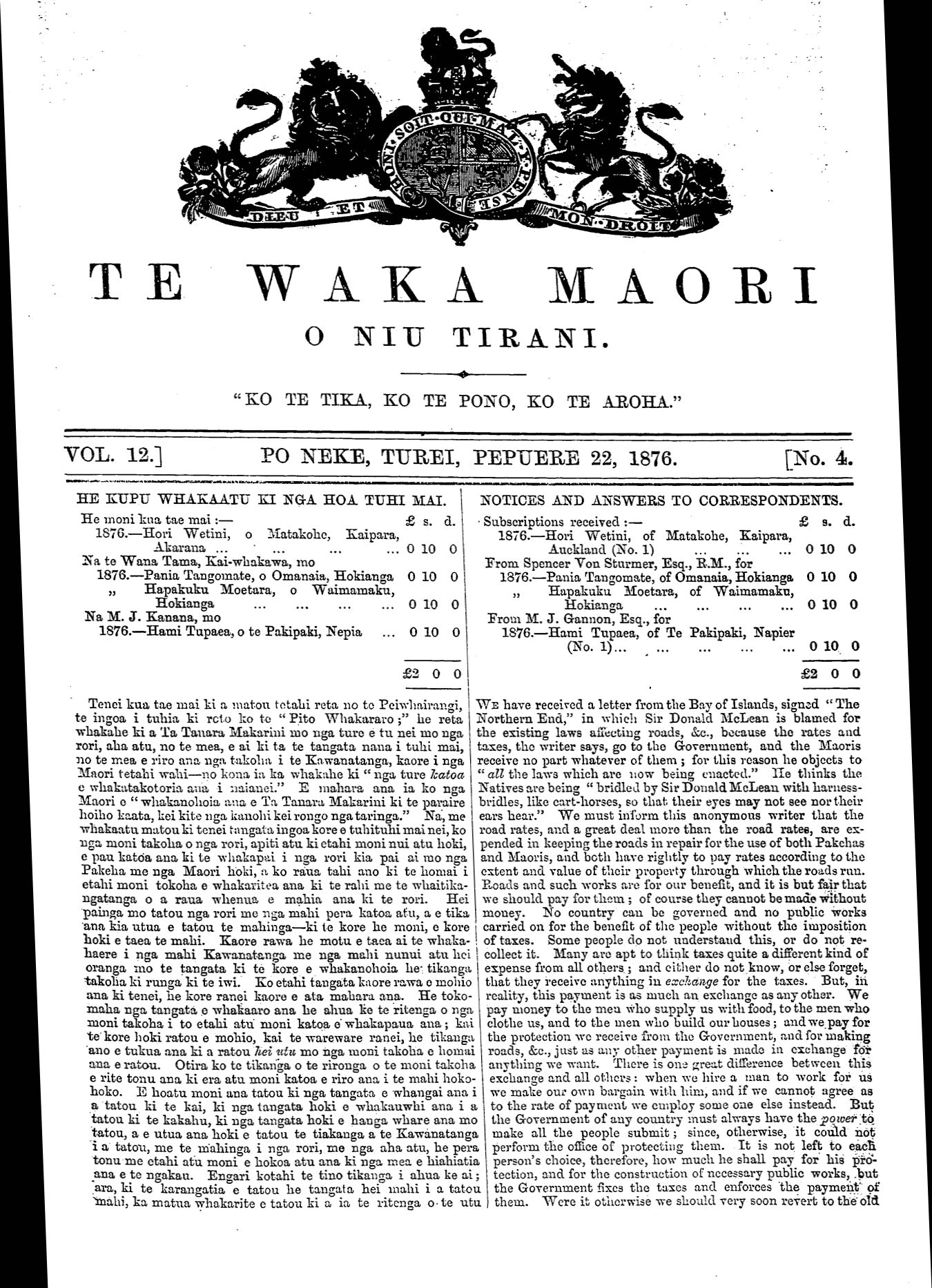 Te Waka Maori o Niu Tirani 1871-1877: Volume 12b, Number 4. 22 February 1876 |