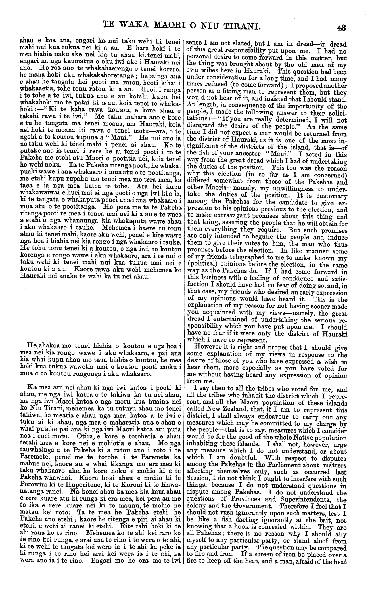 HE Panui atu tenei ki nga Maori o Turanga kia