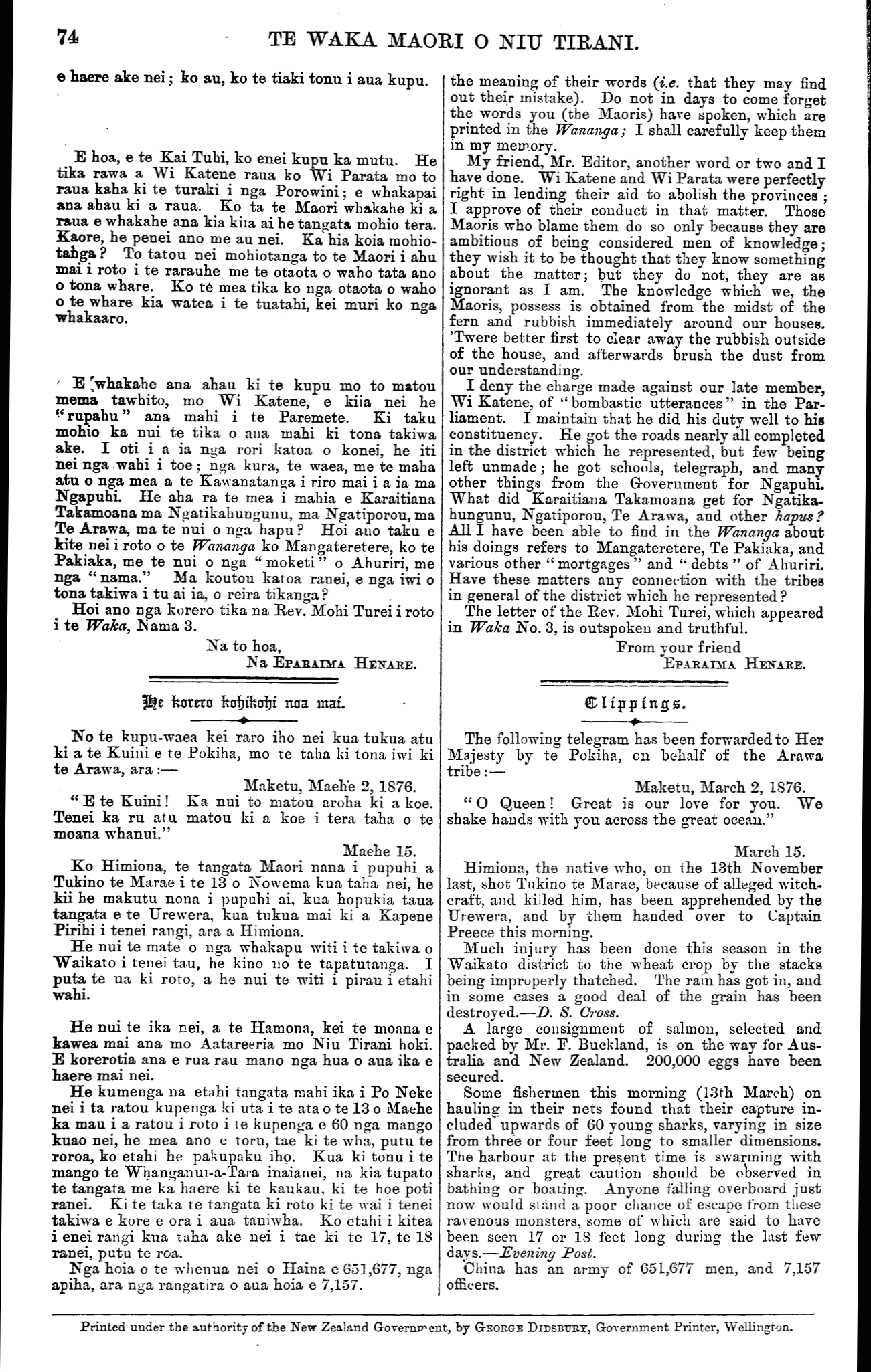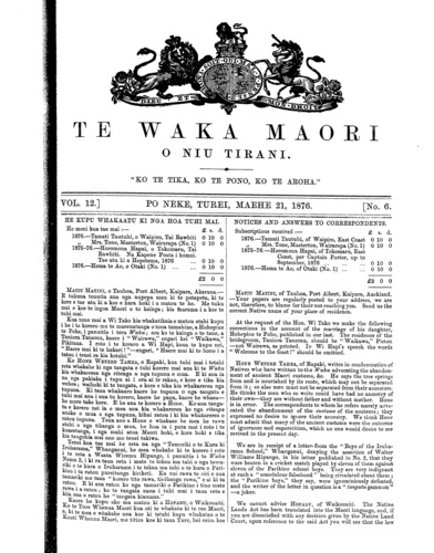 Te Waka Maori o Niu Tirani 1871-1877: Volume 12b, Number 6. 21 March 1876 |