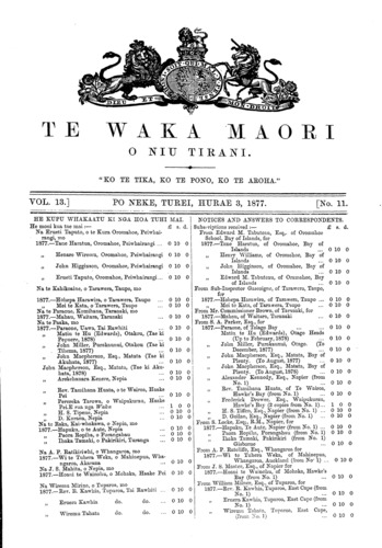 Te Waka Maori o Niu Tirani 1871-1877: Volume 13b, Number 11. 03 July 1877 |