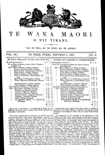 Te Waka Maori o Niu Tirani 1871-1877: Volume 13b, Number 3. 06 February 1877 |