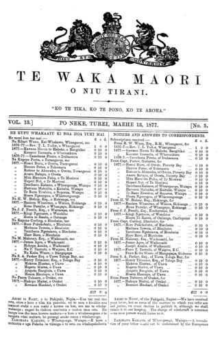 Te Waka Maori o Niu Tirani 1871-1877: Volume 13b, Number 5. 13 March 1877 |