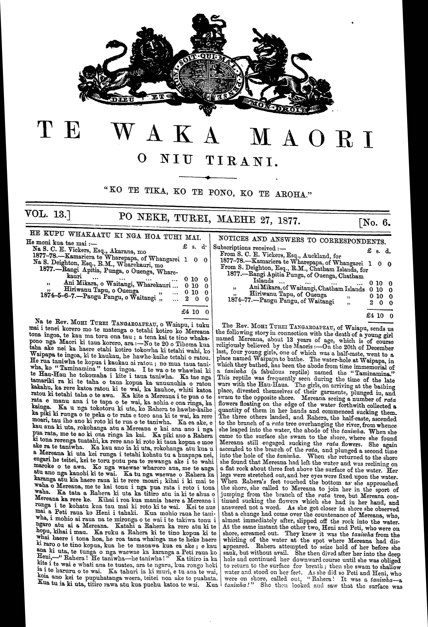 Te Waka Maori o Niu Tirani 1871-1877: Volume 13b, Number 6. 27 March 1877 |