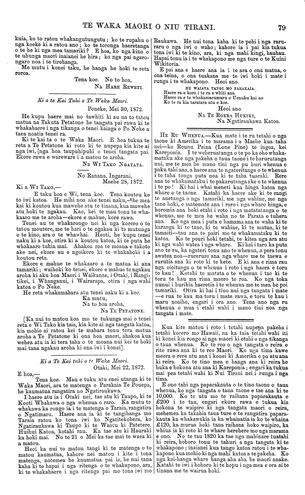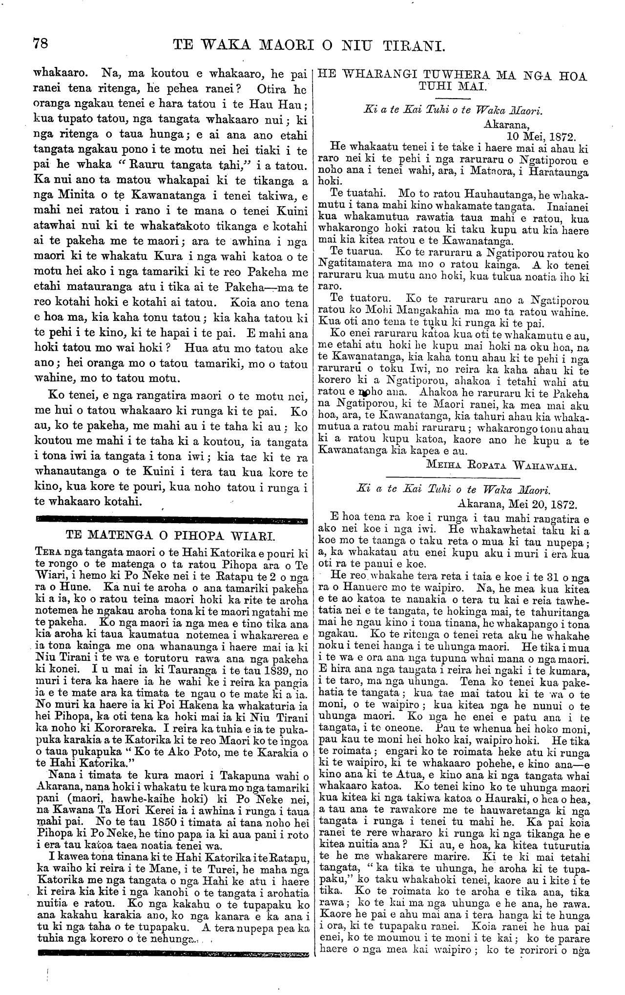 ki te 53 i tenei Mei 1872. Ka kitea te mahi a te