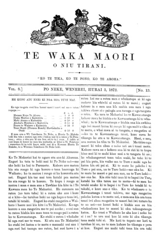 Te Waka Maori o Niu Tirani 1871-1877: Volume 8, Number 13. 03 July 1872 |