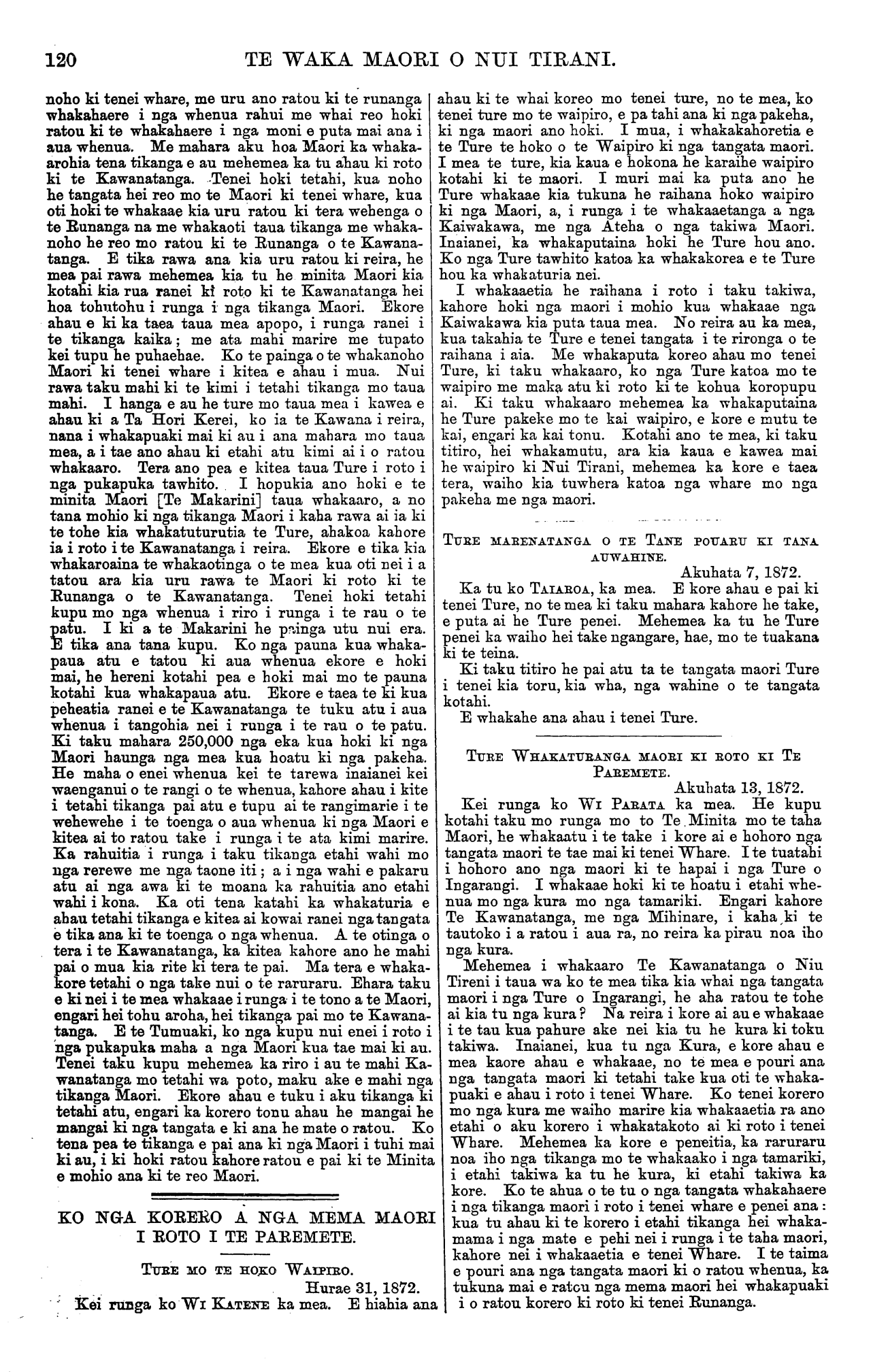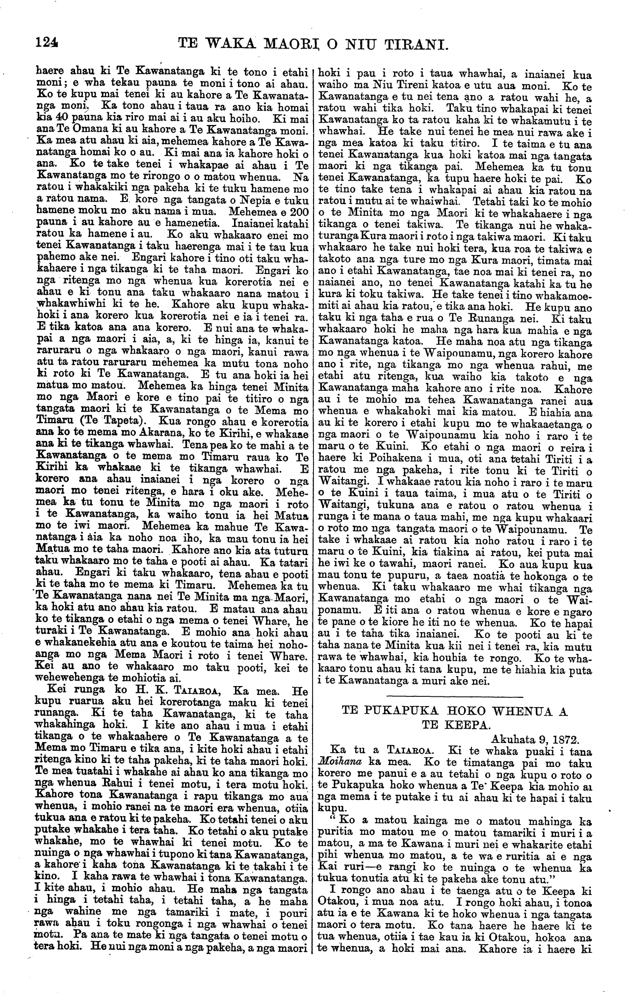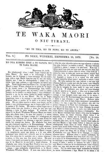 Te Waka Maori o Niu Tirani 1871-1877: Volume 8, Number 18. 18 September 1872 |