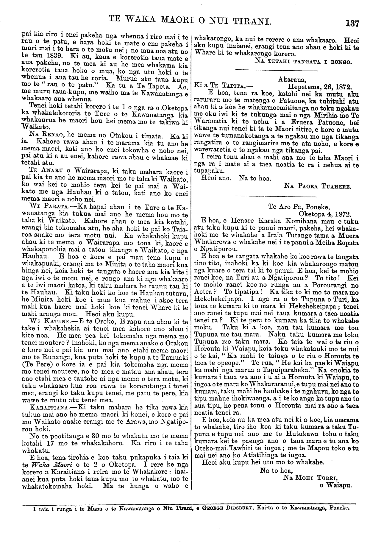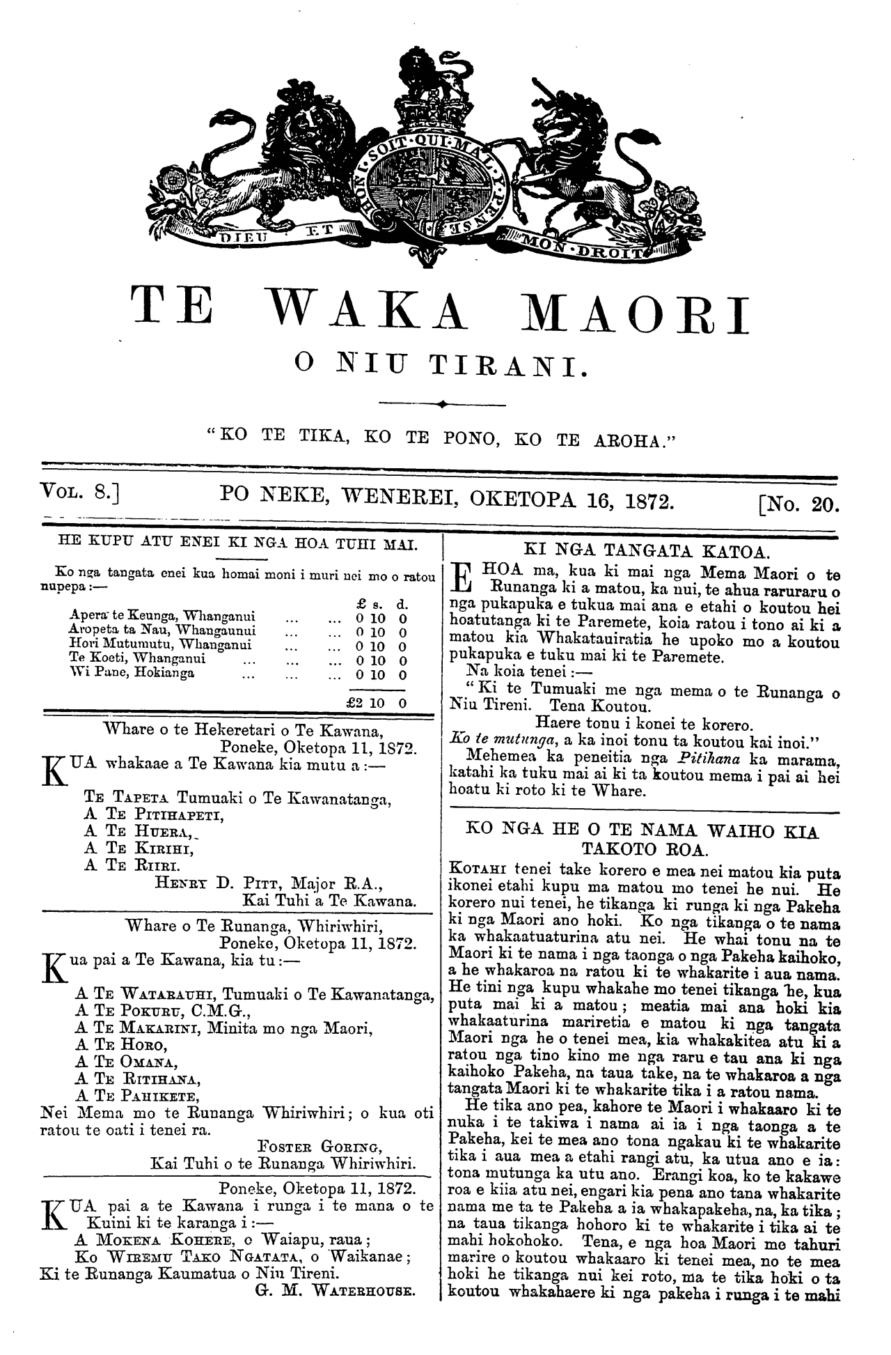 Te Waka Maori o Niu Tirani 1871-1877: Volume 8, Number 20. 16 October 1872 |