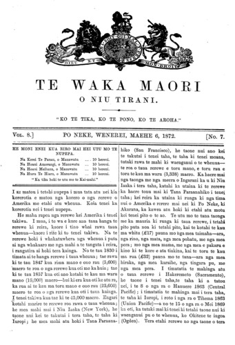 Te Waka Maori o Niu Tirani 1871-1877: Volume 8, Number 7. 06 March 1872 |
