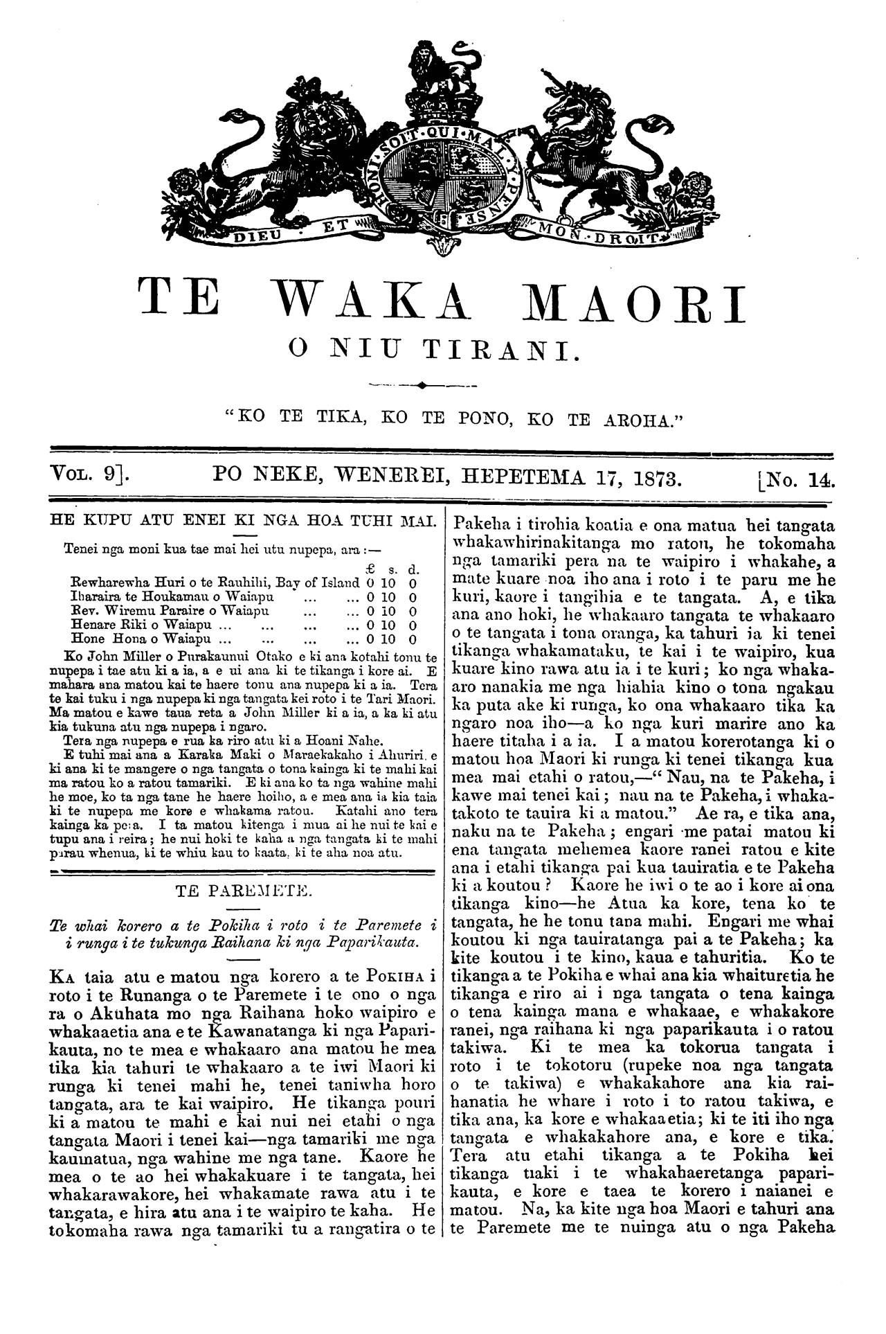 Te Waka Maori o Niu Tirani 1871-1877: Volume 9, Number 14. 17 September 1873 |