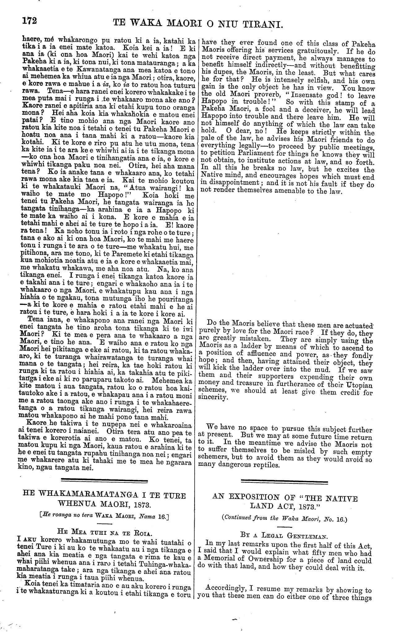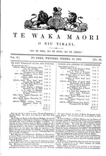 Te Waka Maori o Niu Tirani 1871-1877: Volume 9, Number 19. 10 December 1873 |