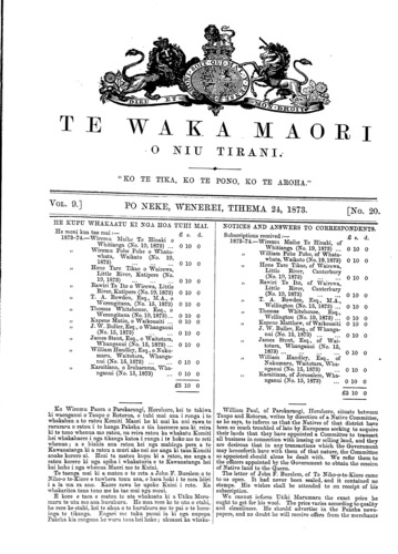 Te Waka Maori o Niu Tirani 1871-1877: Volume 9, Number 20. 24 December 1873 |