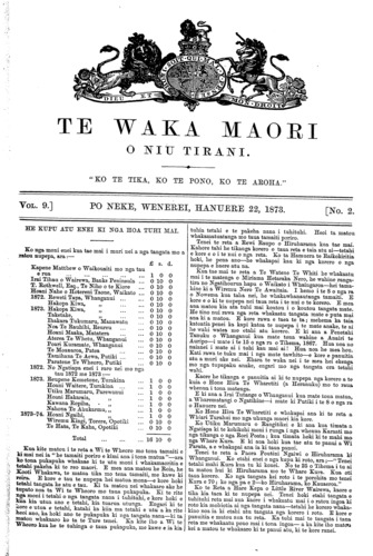 Te Waka Maori o Niu Tirani 1871-1877: Volume 9, Number 2. 22 January 1873 |