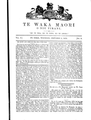 Te Waka Maori o Niu Tirani 1871-1877: Volume 9, Number 3. 05 February 1873 |
