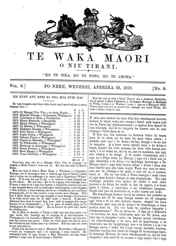 Te Waka Maori o Niu Tirani 1871-1877: Volume 9, Number 6. 23 April 1873 |