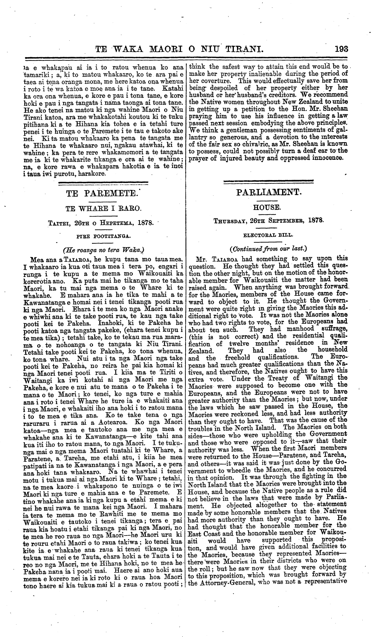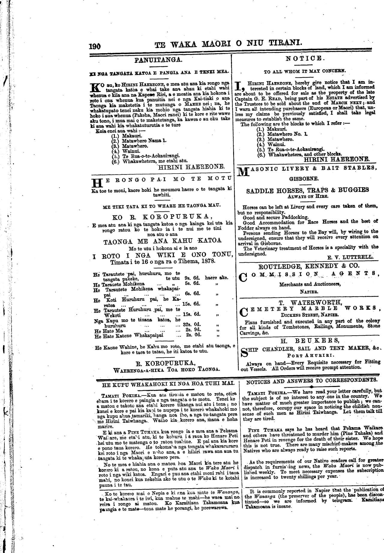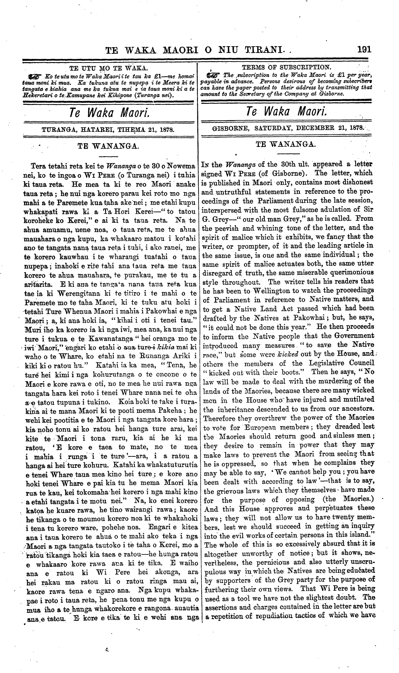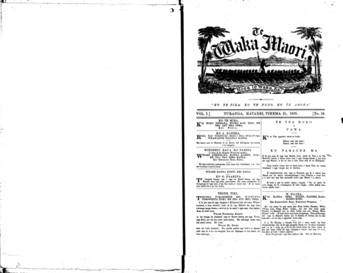 Te Waka Maori o Niu Tirani 1878-1879: Volume 1, Number 13. 21 December 1878 |