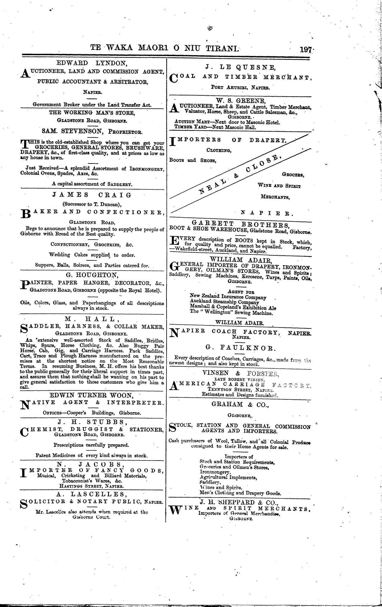 ASHTON, E., Provincial Hotel, opposite the Theatre, Napier.