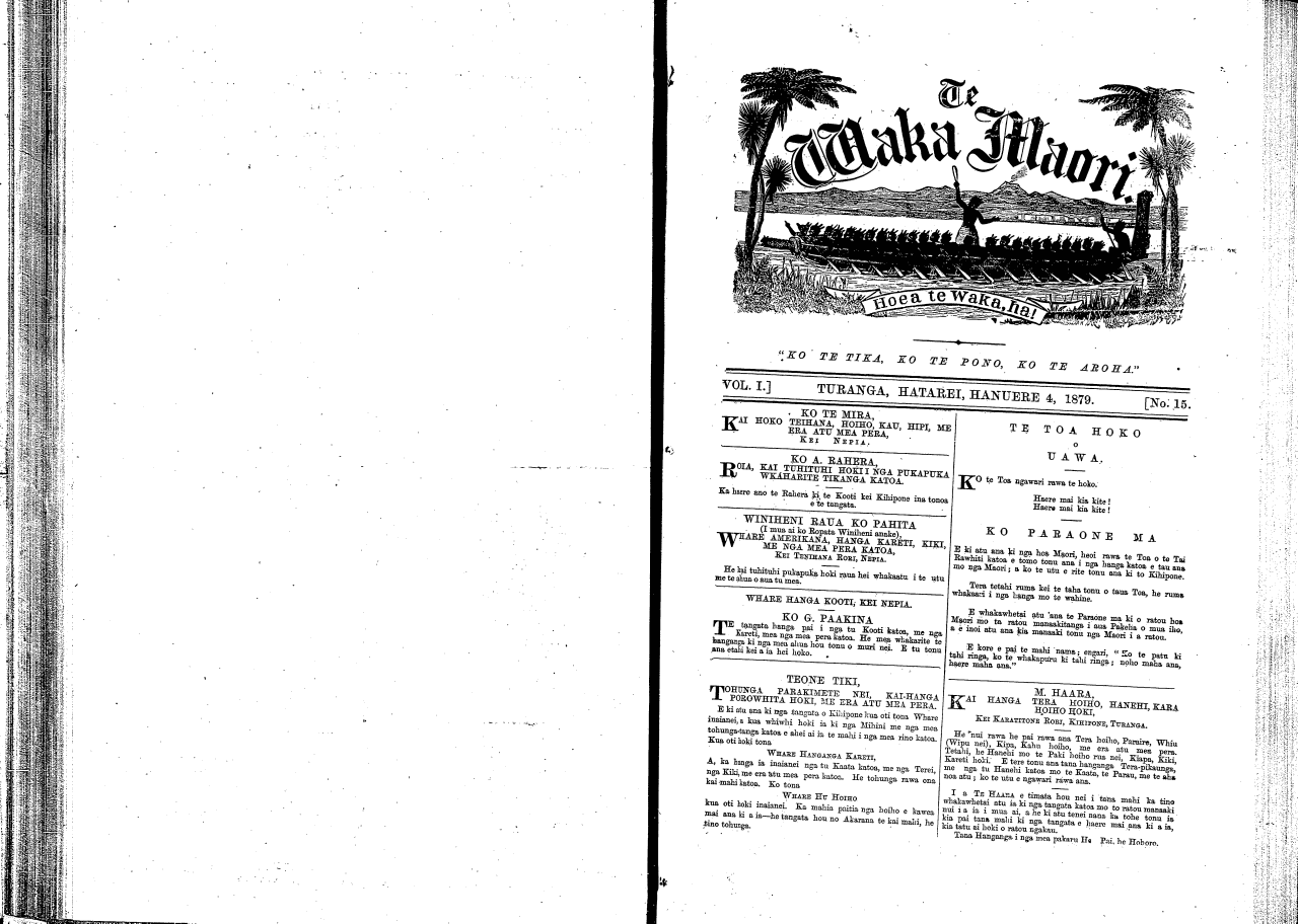 Te Waka Maori o Niu Tirani 1878-1879: Volume 1, Number 15. 04 January 1879 |