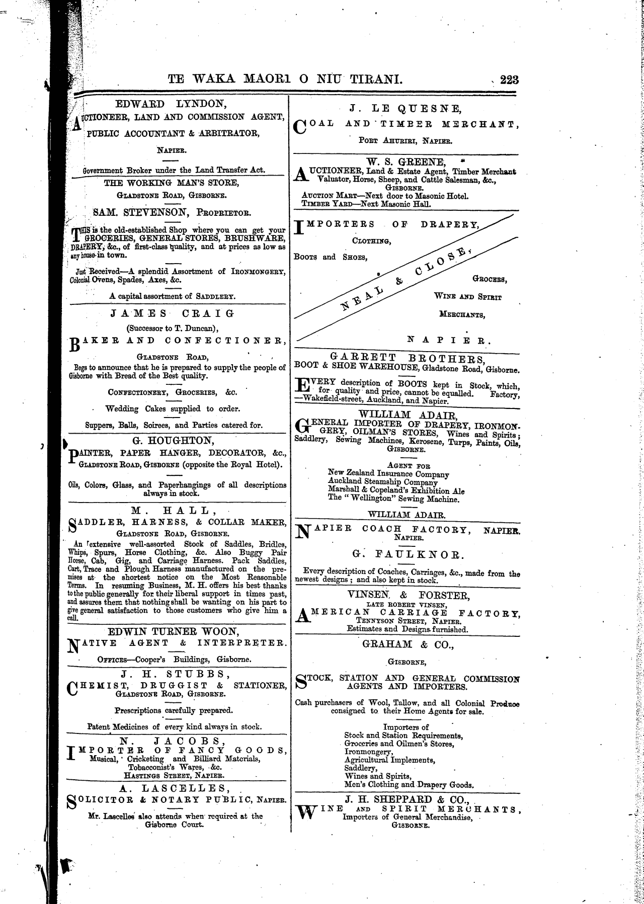 —Wakefield-street. Auckland, and Napier.