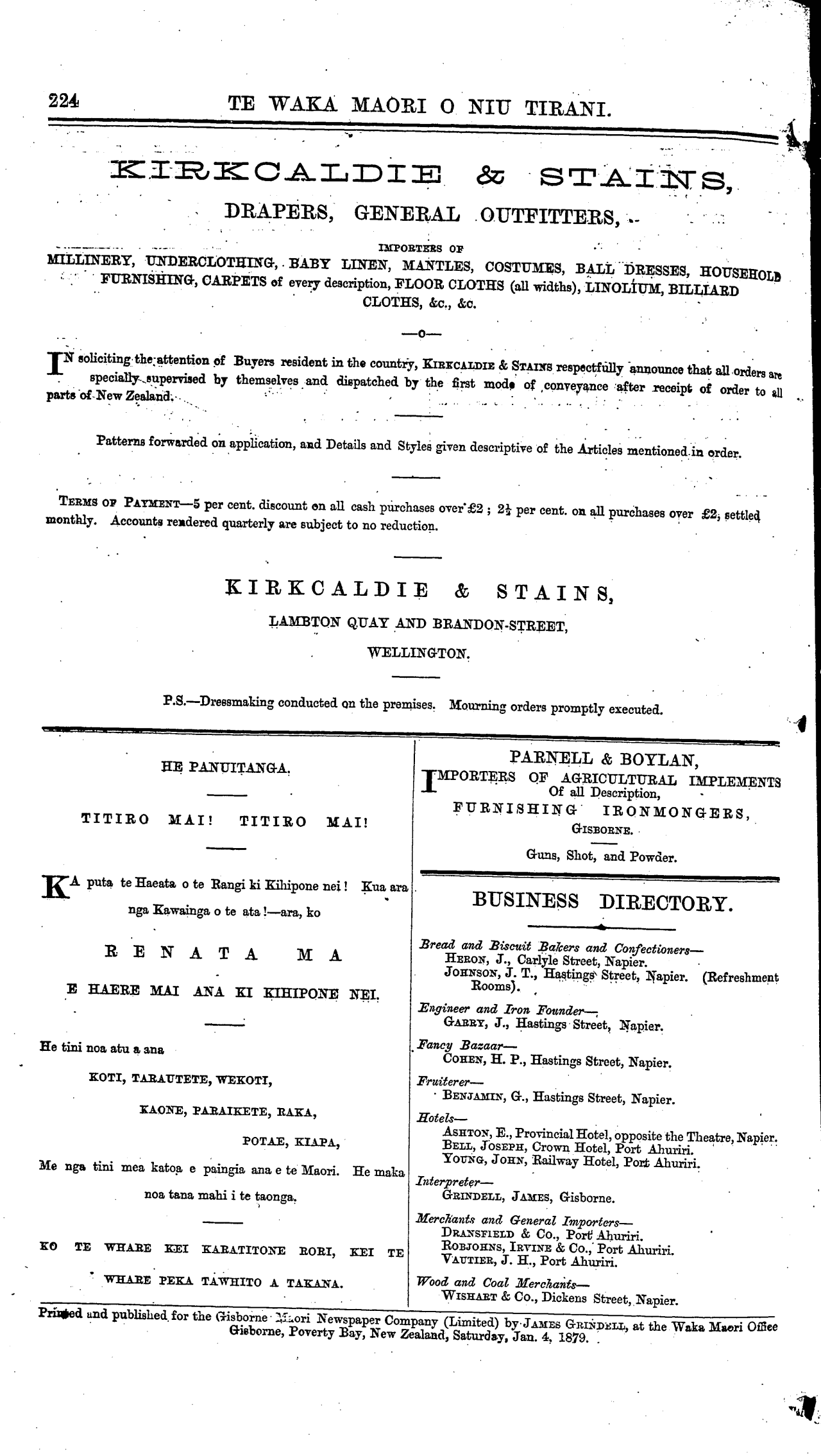 mo nga Maori; a ko te utu e rite tonu ana ki to Kihipone.