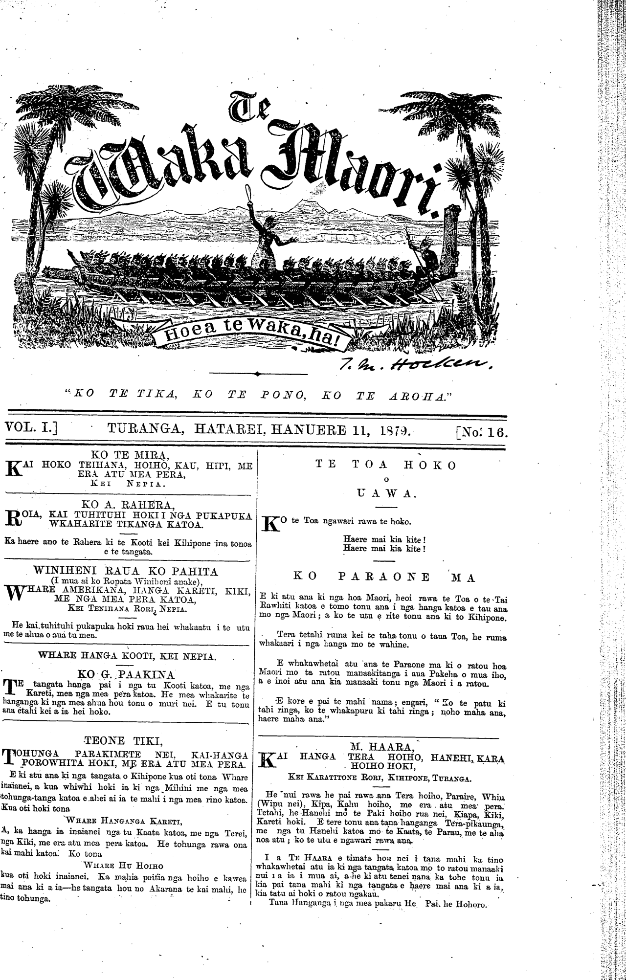 VOL. 1] TURANGA, HATAREI HANUERE 11, 1879. [No: 16.
