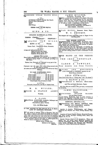 ASHTON, E., Provincial Hotel, opposite the Theatre, Napier.