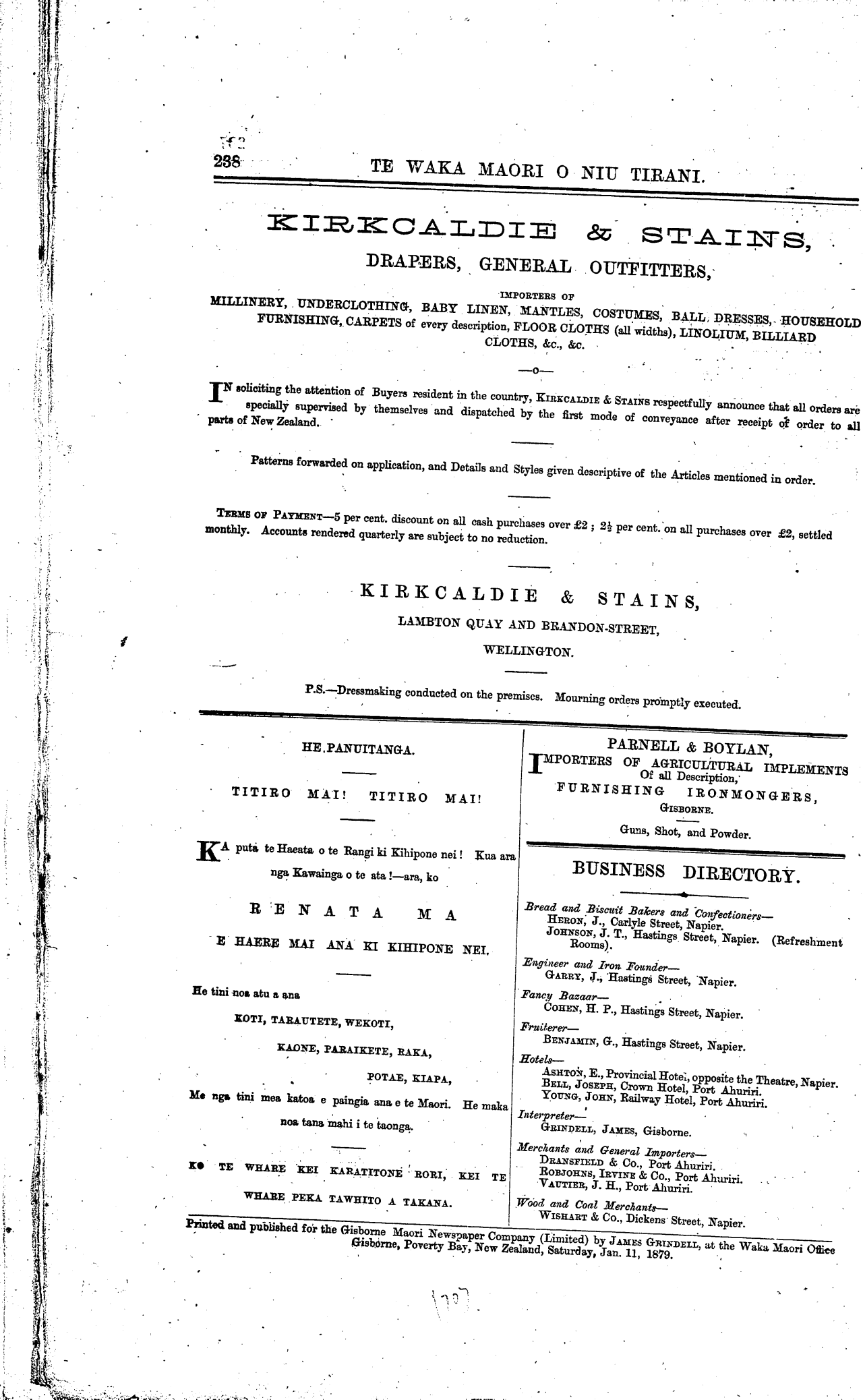 mo nga Maori; a ko te utu e rite tonu ana ki to Kihipone.