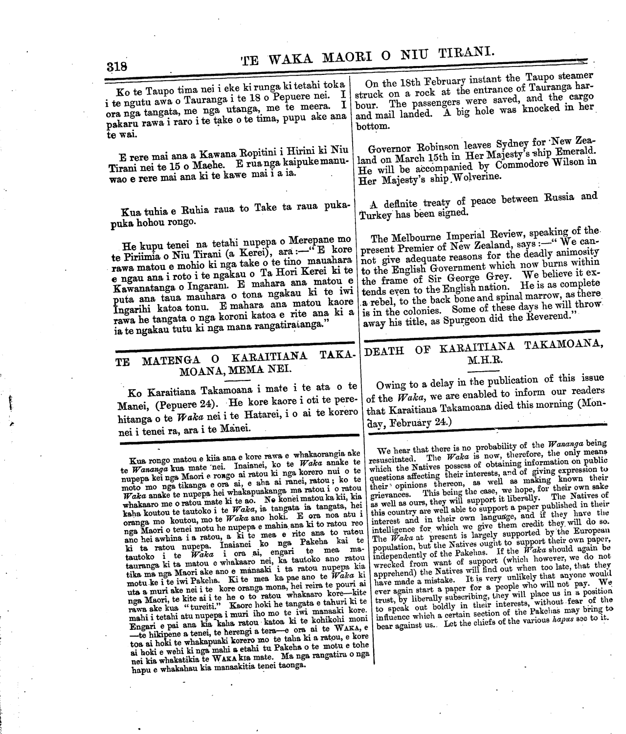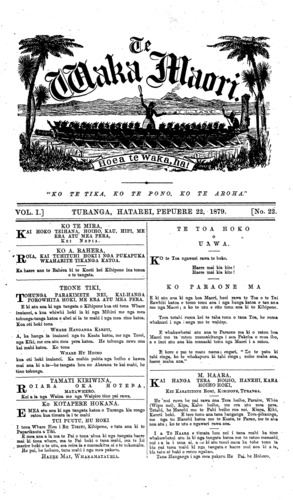 Te Waka Maori o Niu Tirani 1878-1879: Volume 1, Number 22. 22 February 1879 |