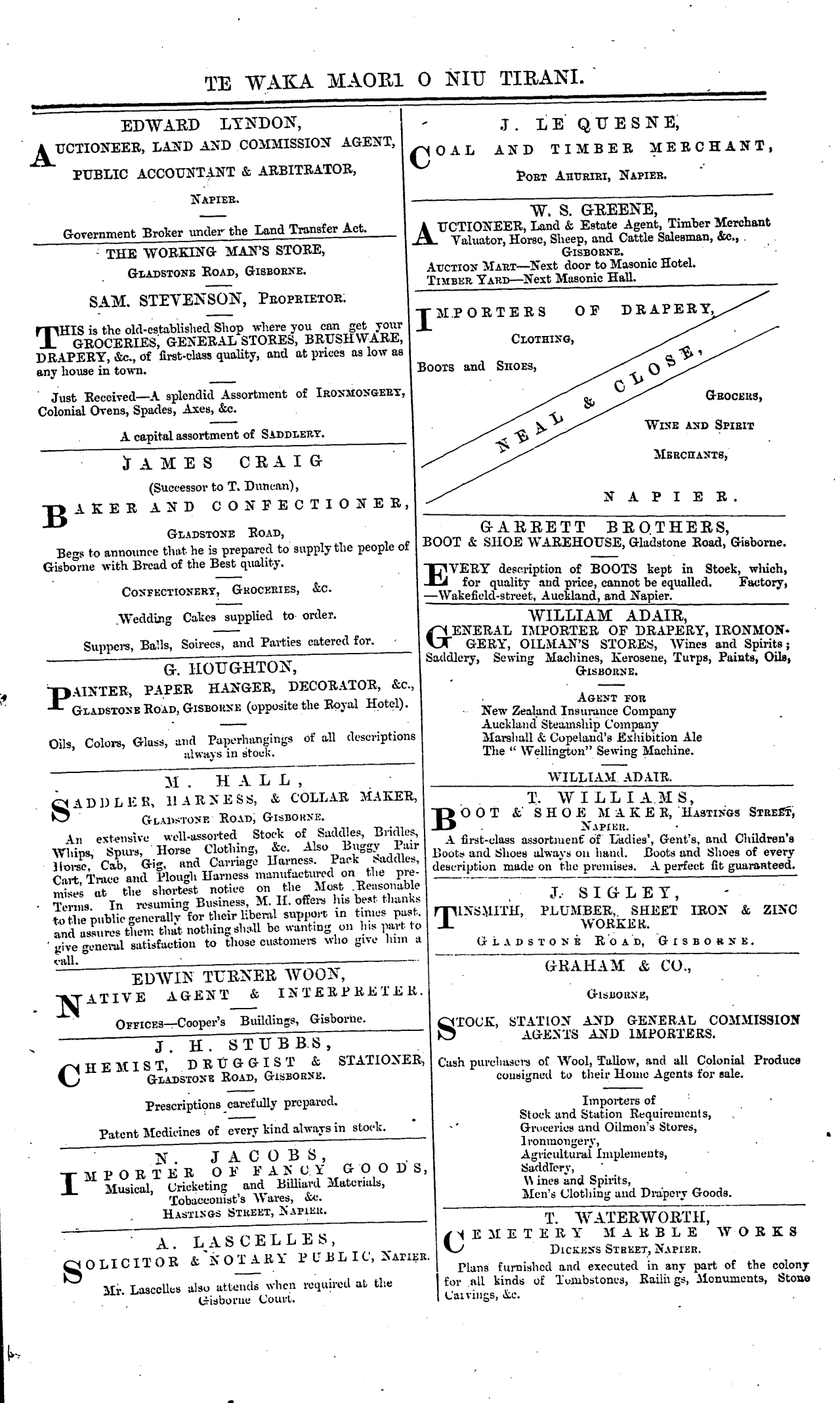 GARRY, J., Hastings Street, Napier.