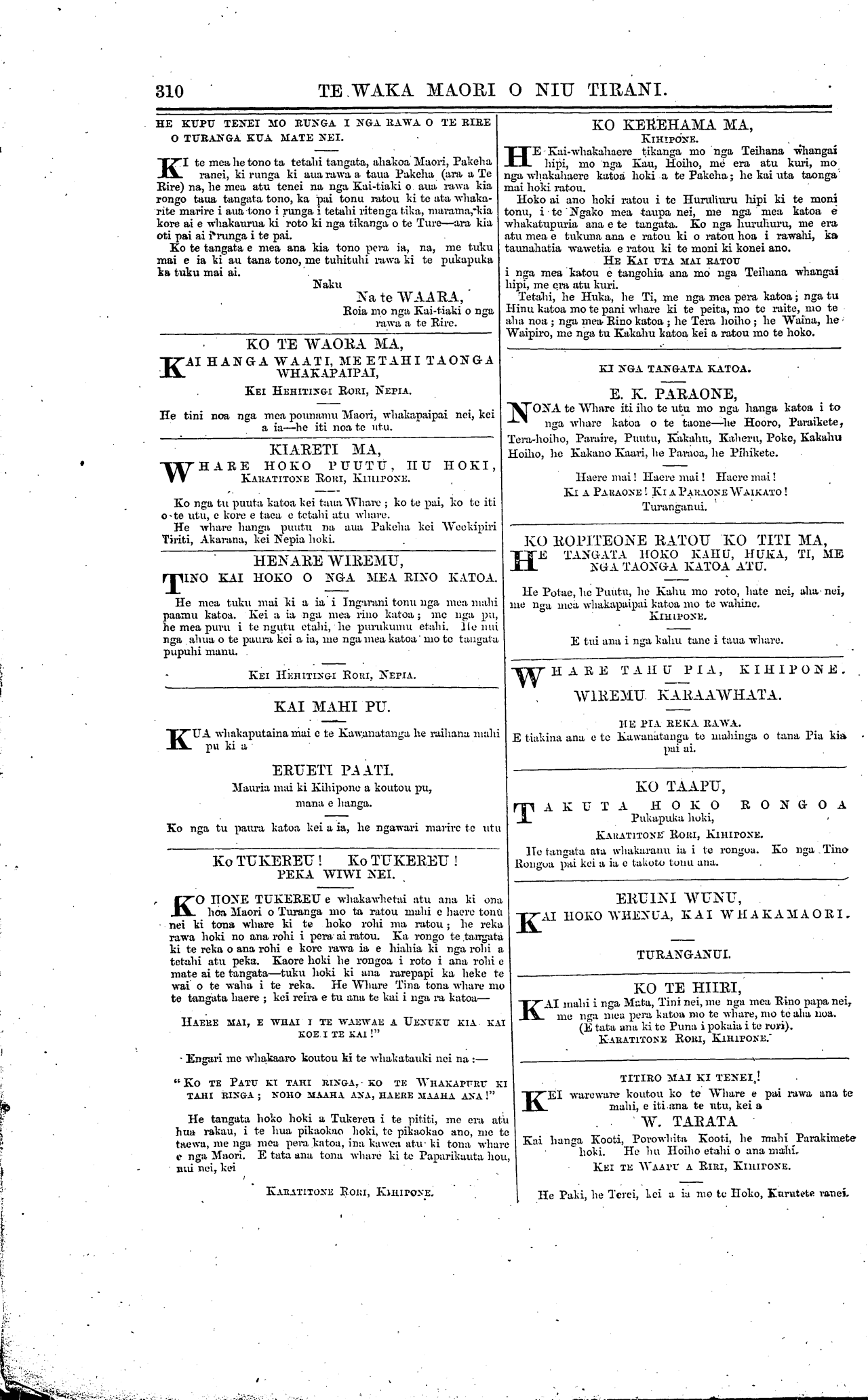 mo nga Maori; a ko te utu e rite tonu ana ki to Kihipone.