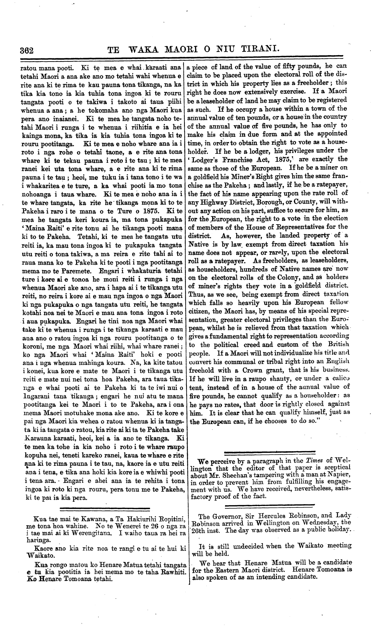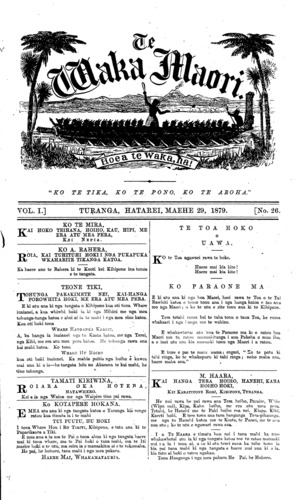 Te Waka Maori o Niu Tirani 1878-1879: Volume 1, Number 26. 30 March 1879 |