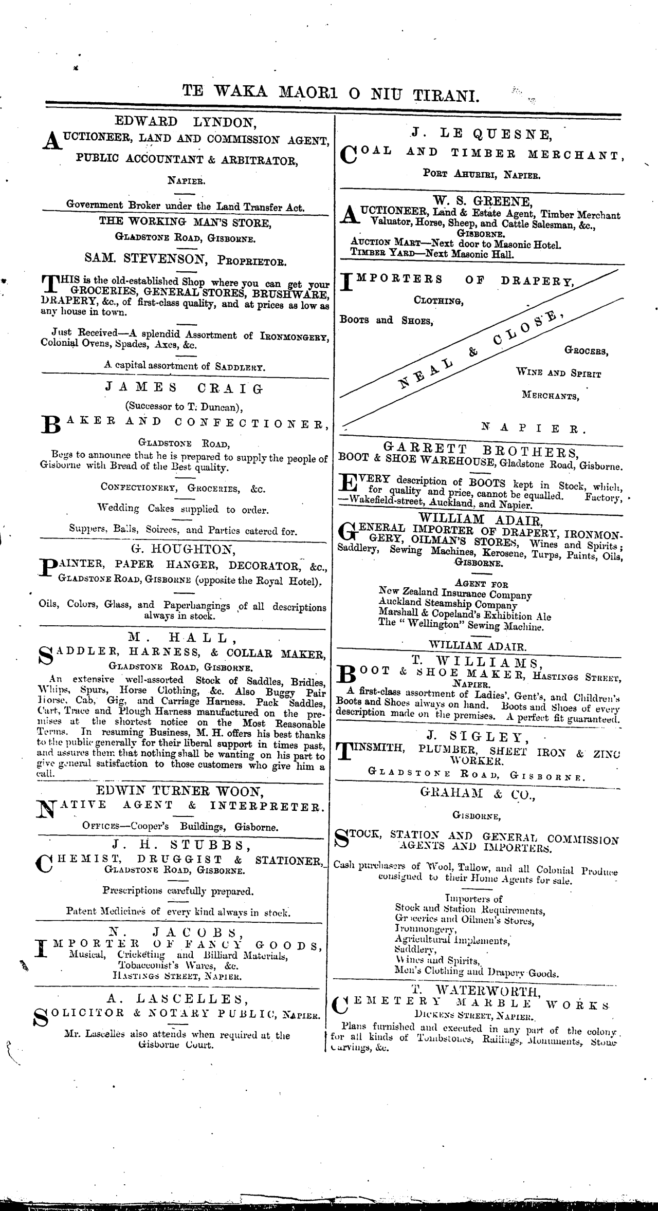 ASHTON, E., Provincial Hotel, opposite the Theatre, Napier.