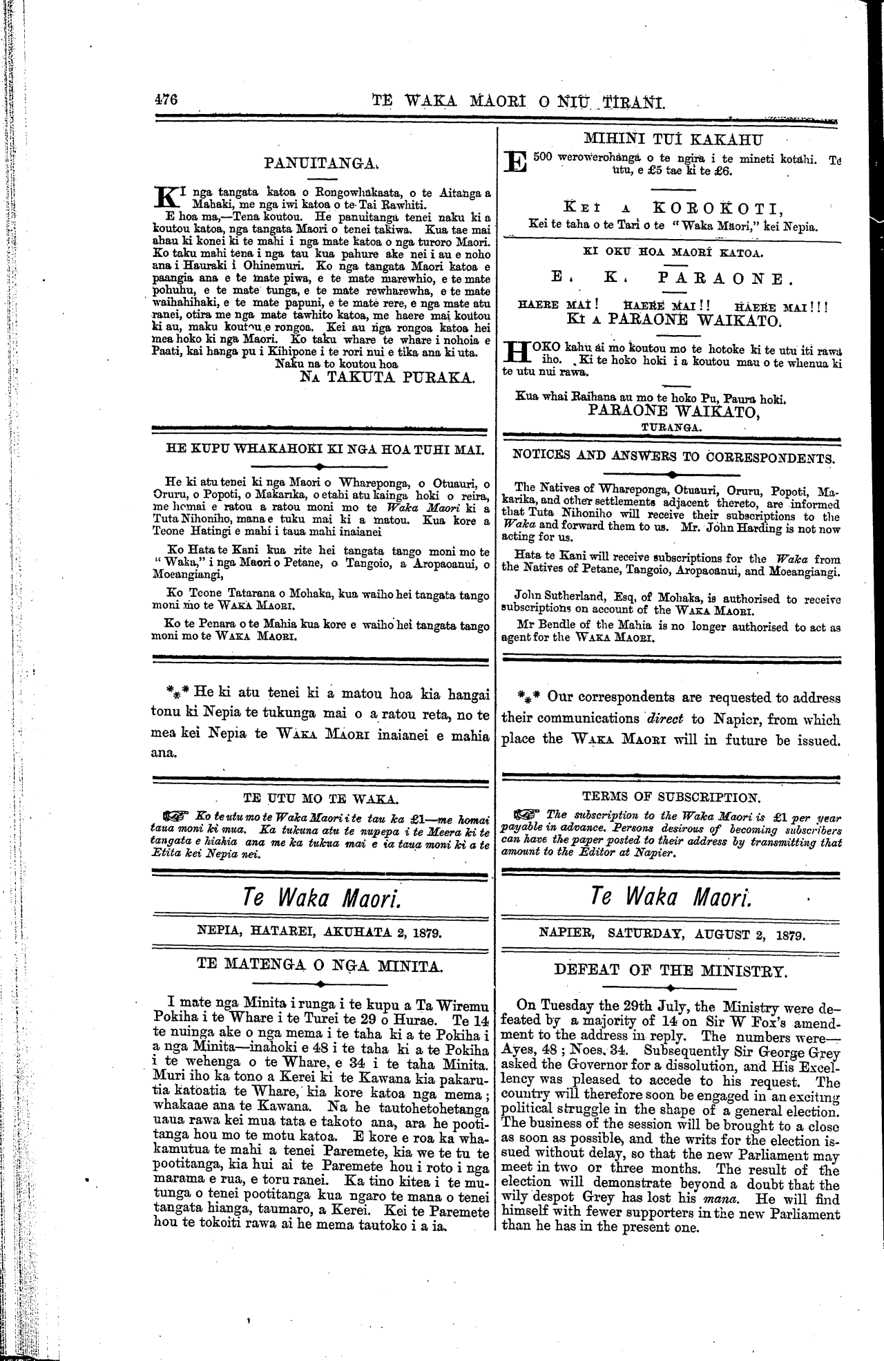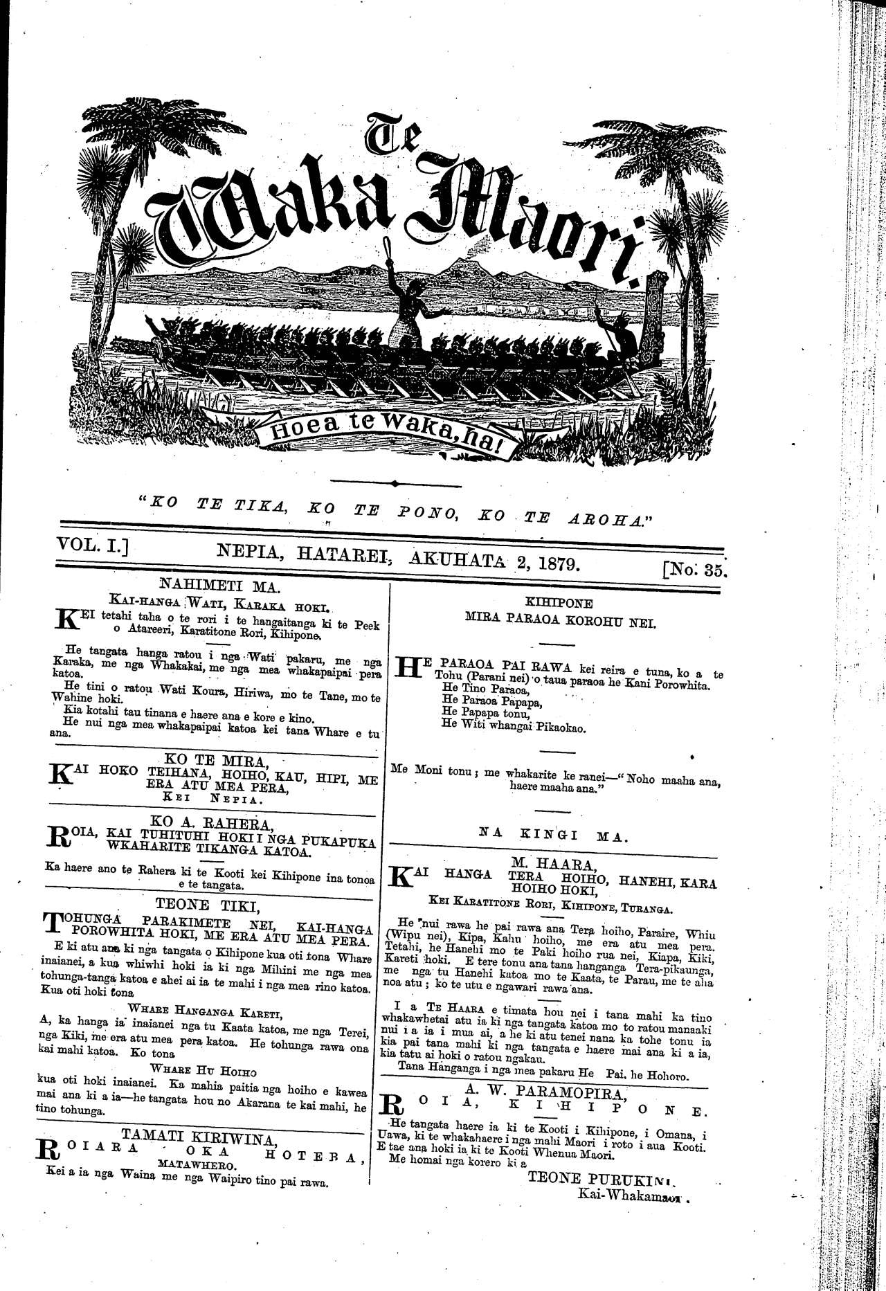 Te Waka Maori o Niu Tirani 1878-1879: Volume 1, Number 35. 02 August 1879 |