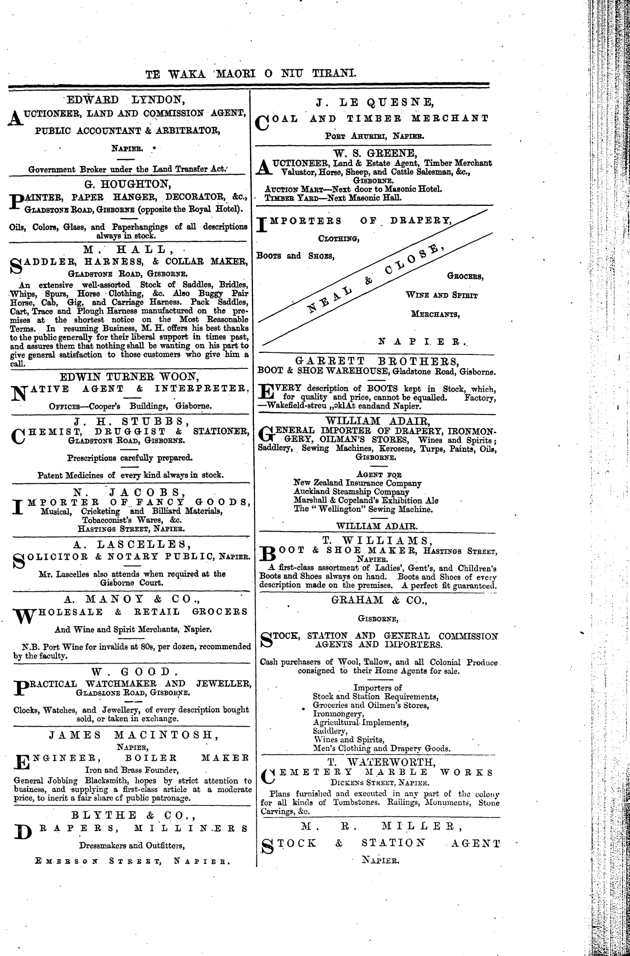 ASHTON, E., Provincial Hotel, opposite the Theatre, Napier.