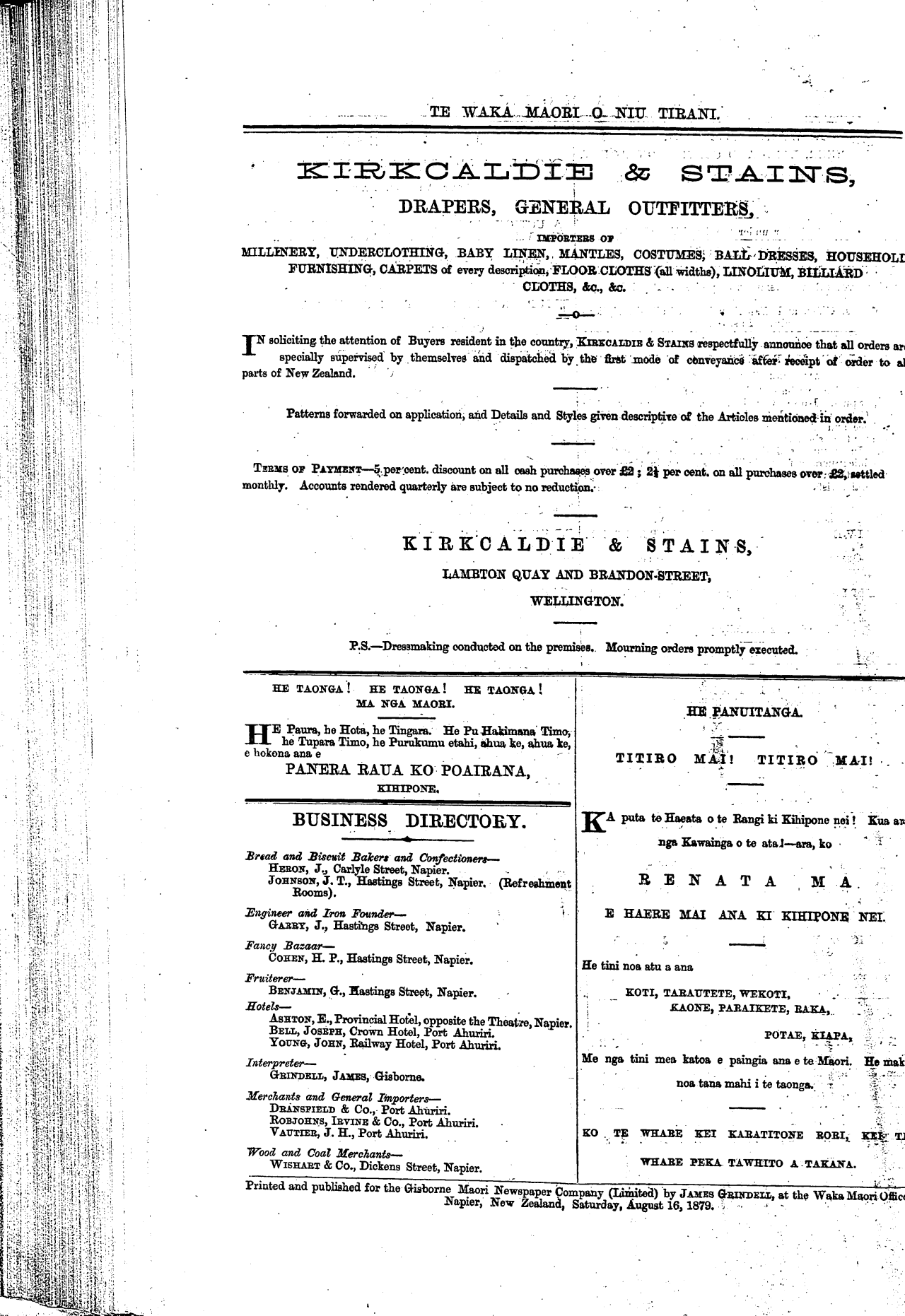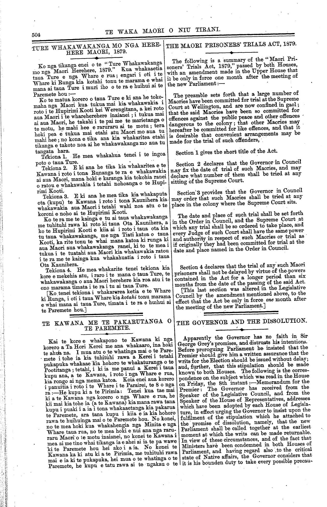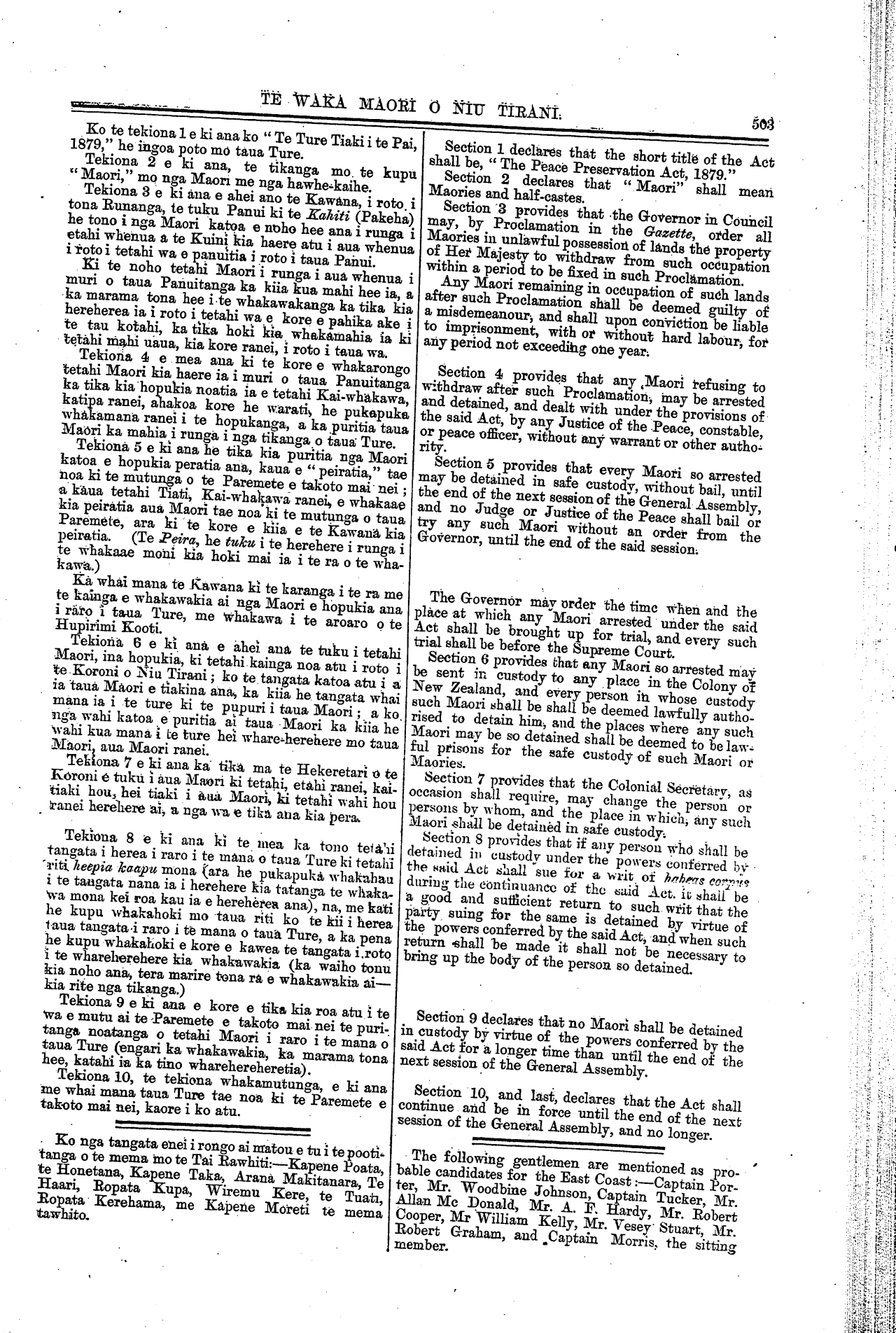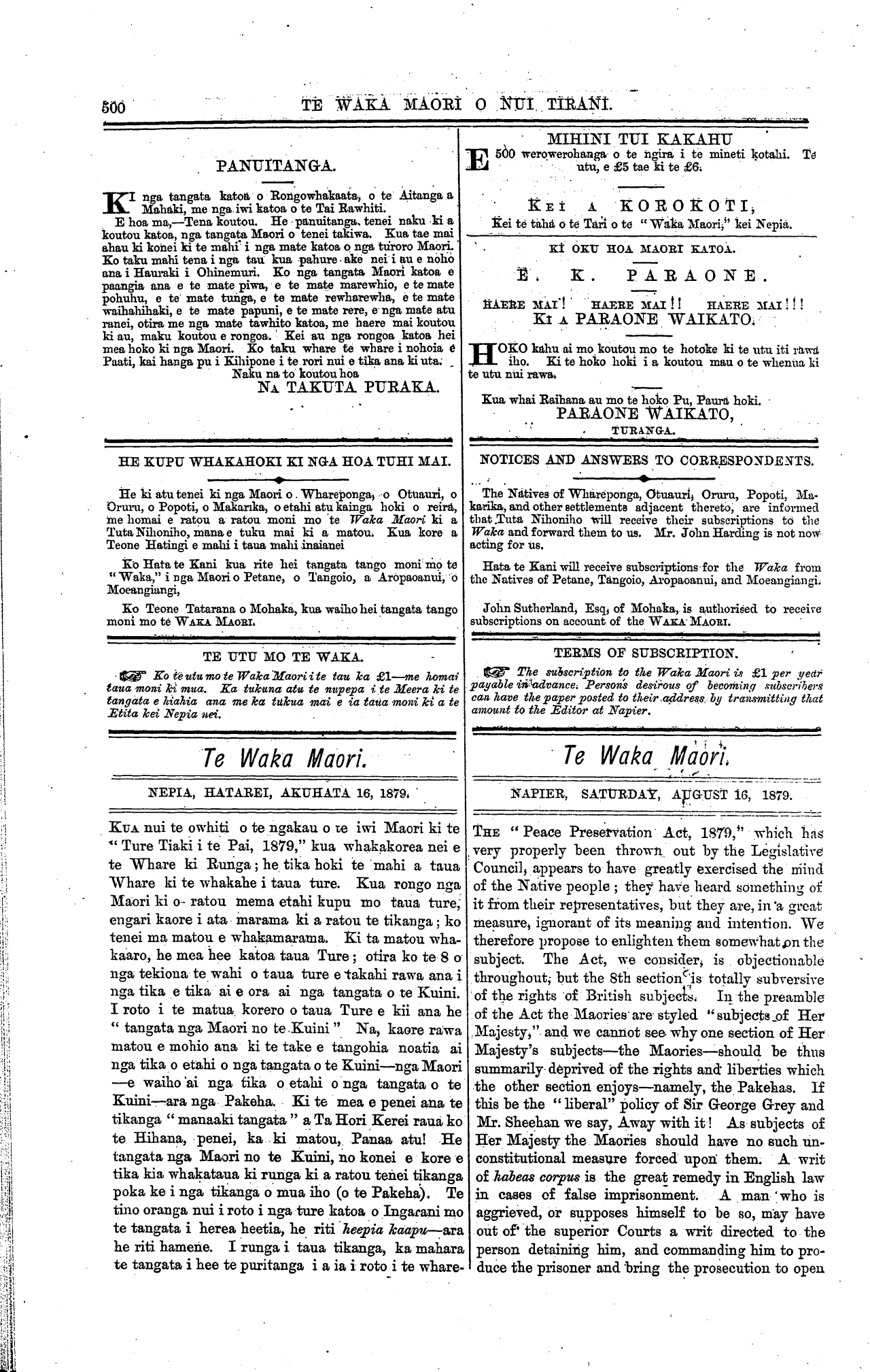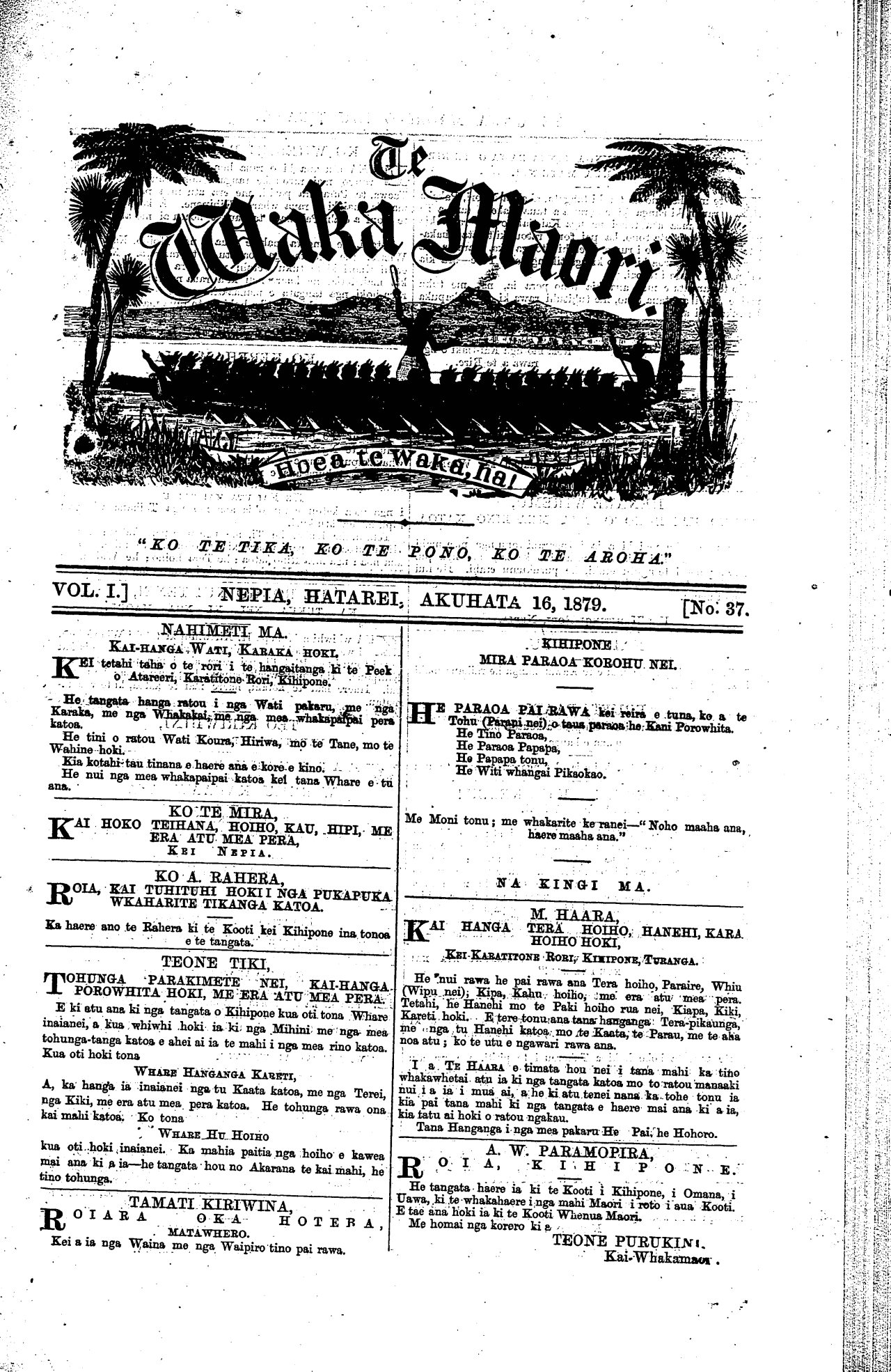 Te Waka Maori o Niu Tirani 1878-1879: Volume 1, Number 37. 16 August 1879 |