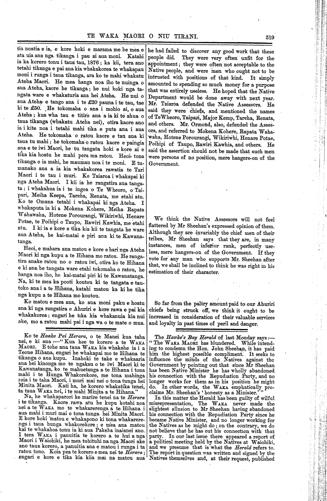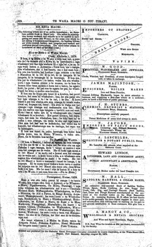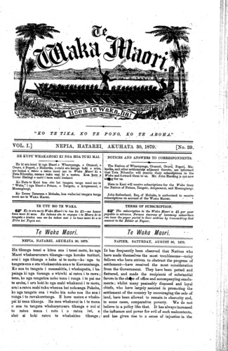 Te Waka Maori o Niu Tirani 1878-1879: Volume 1, Number 39. 30 August 1879 |