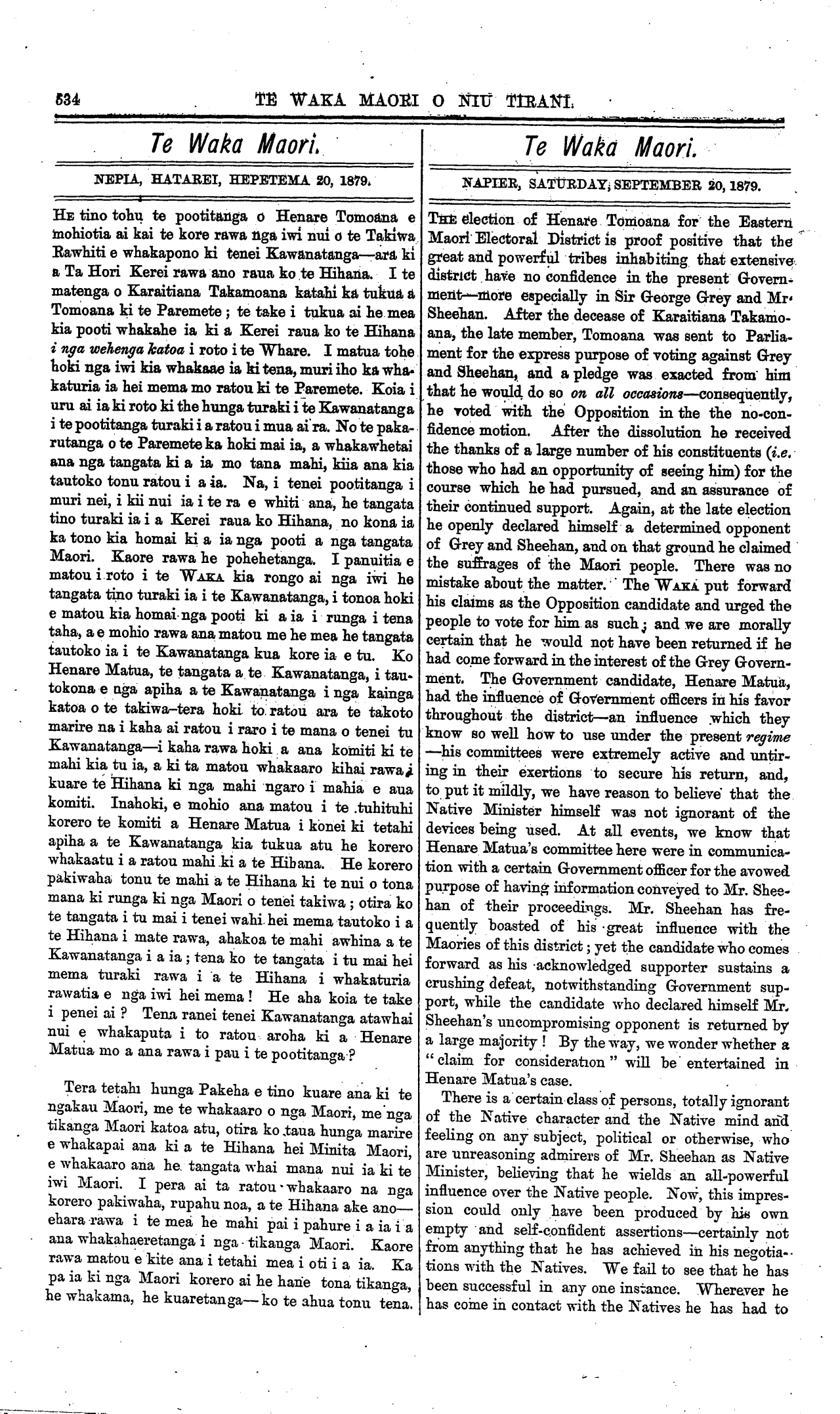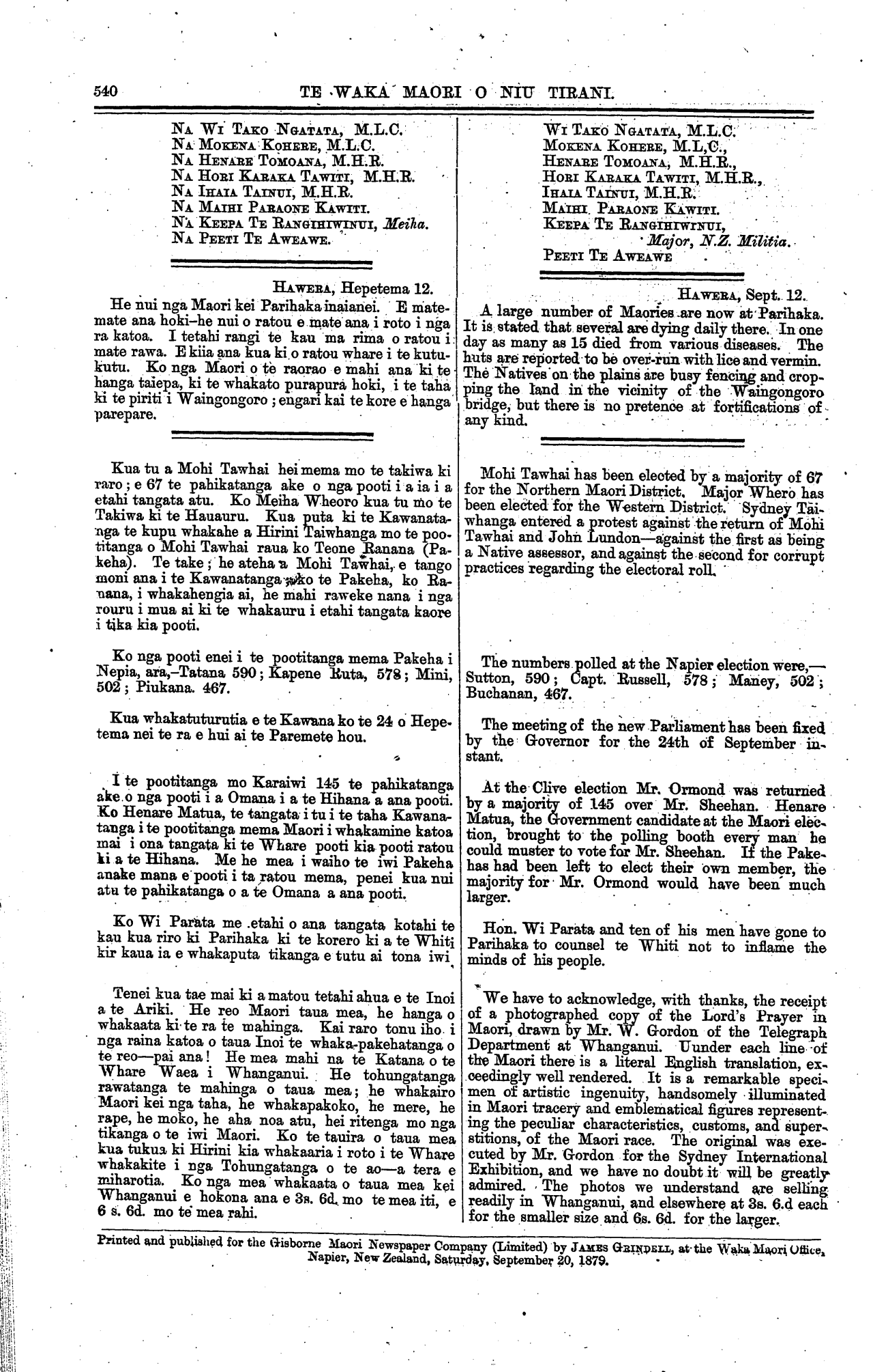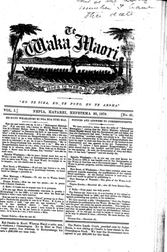 Te Waka Maori o Niu Tirani 1878-1879: Volume 1, Number 41. 20 September 1879 |