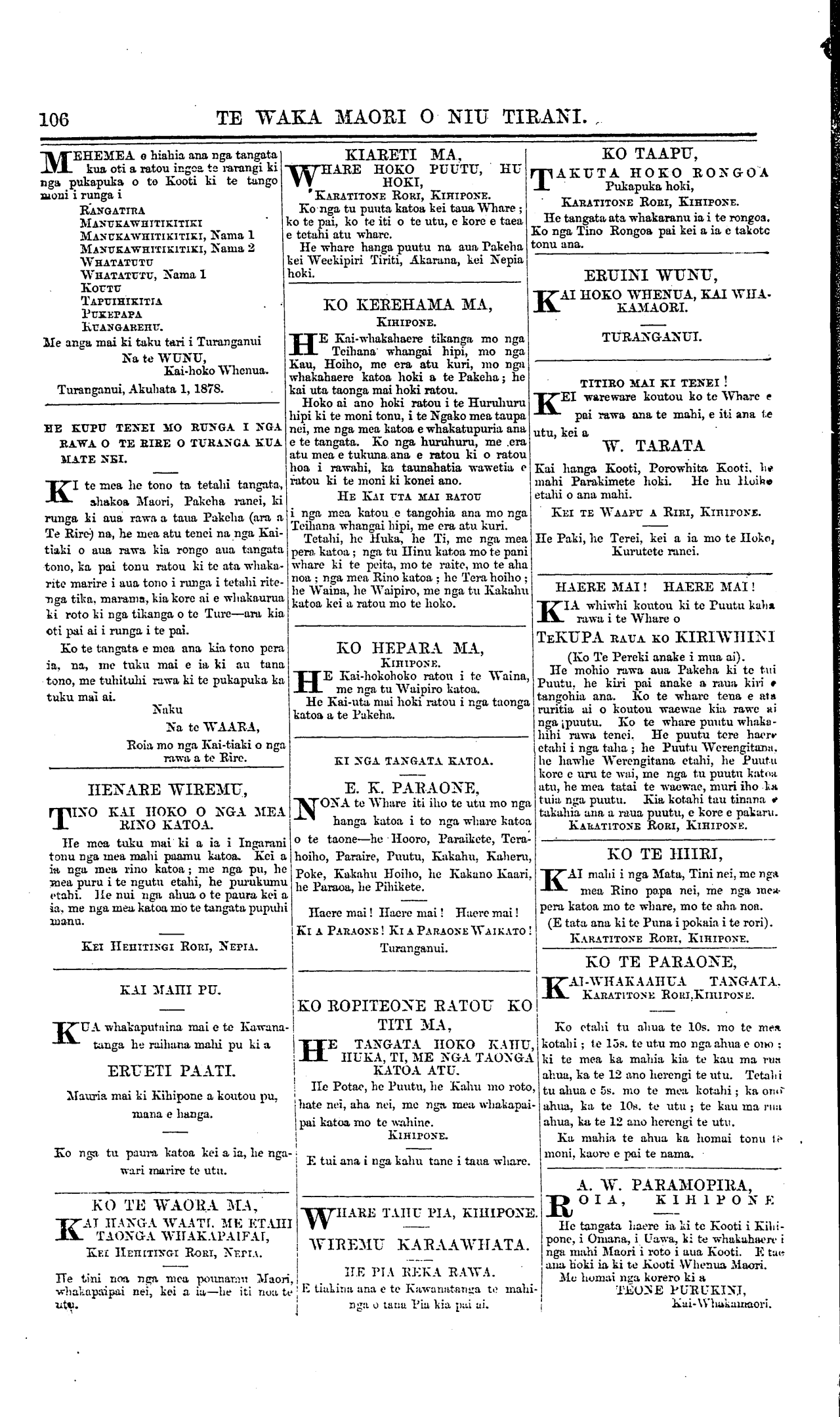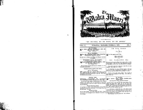 Te Waka Maori o Niu Tirani 1878-1879: Volume 1, Number 7. 09 November 1878 |